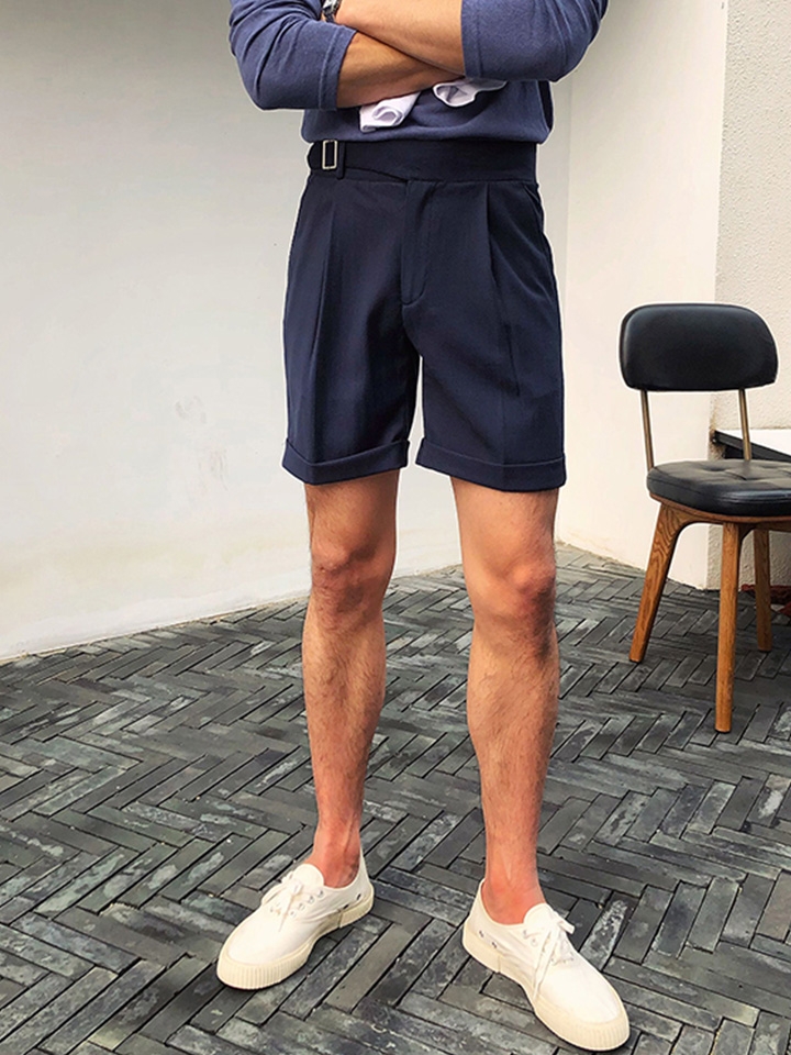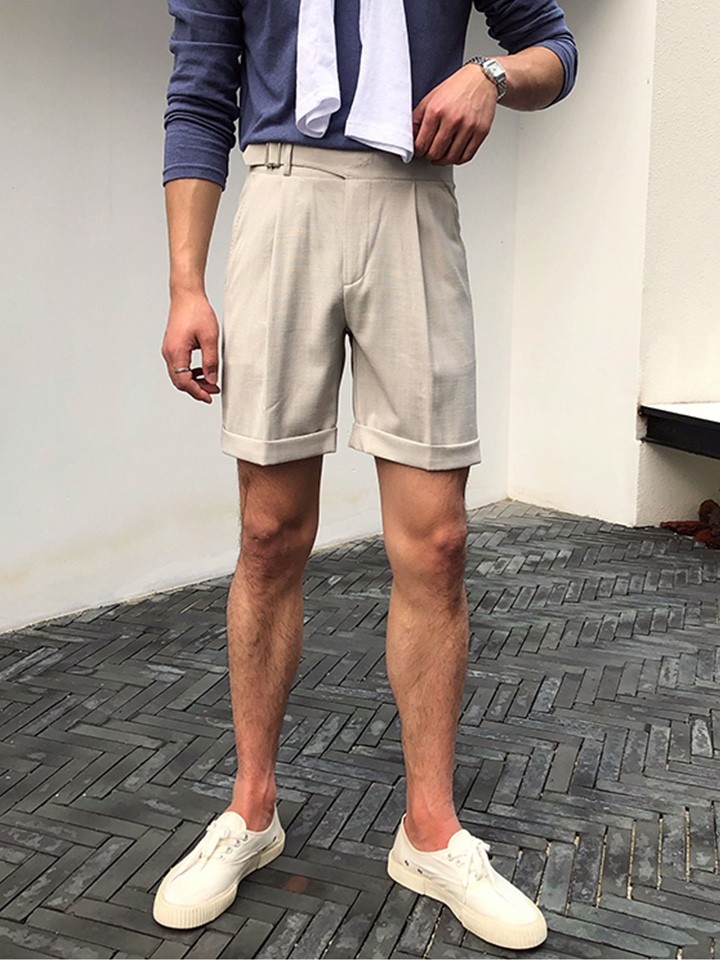 腰间本布腰带既是装饰,也具有调节腰围的实际作用,一举两得。加上金属扣的光泽度,填补了裤子本身颜色的哑光带来的单调,使其更具亮点。