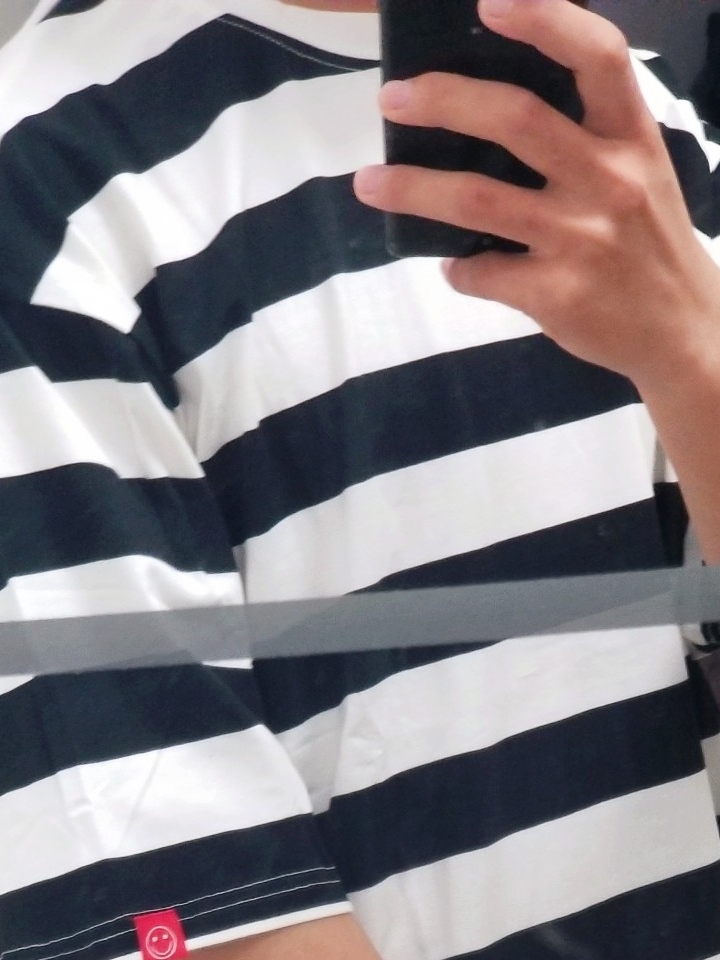 黑白条条纹的条纹式T恤是最早出现也是最常见的,但是这款以黑色为底的条纹式设计确实焕发了另一种风采,看着沉稳中又散发着迷人的线条感。下摆圆顺整齐,线条流畅富有动感,为衣服注入更多的鲜活气息,穿着时尚大气。与迷彩束脚裤短裤,再加入板鞋即可,清新帅气。