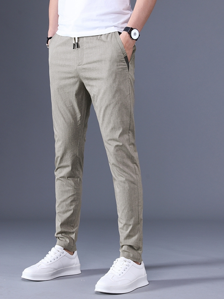 夏季薄款新品纯棉男士修身休闲裤直筒韩版裤子小脚裤长裤男裤