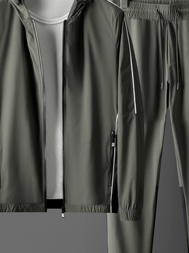 这款运动套装采用了轻薄的面料,穿着舒适,透气的同时又能让你在运动中保持干爽,让您的运动更加的舒适。