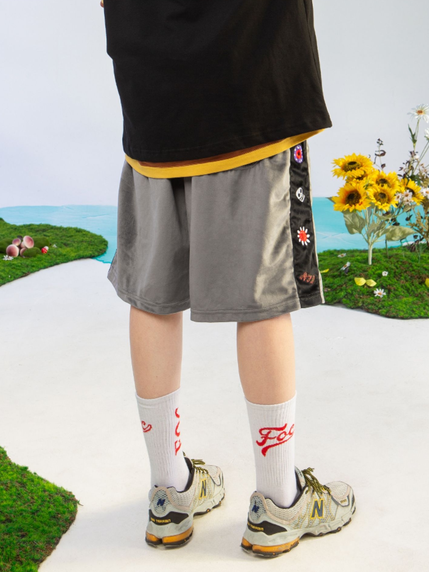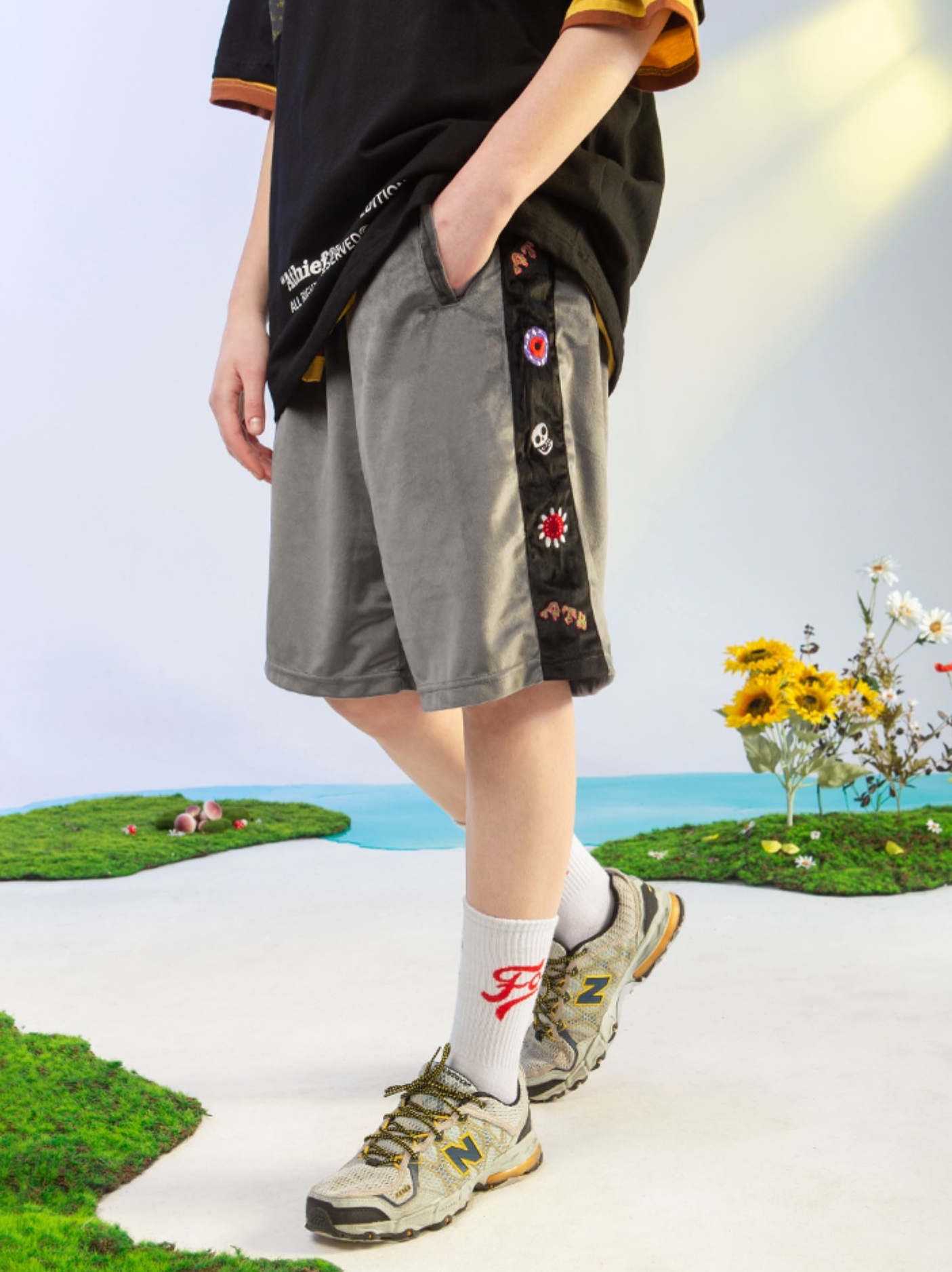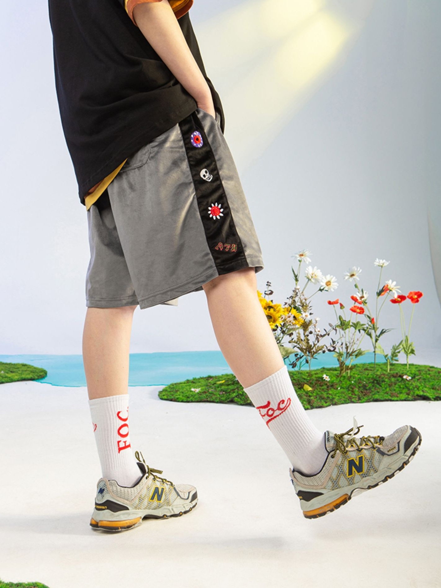 短裤以篮球裤作为蓝本加以改造,很好的兼顾了实用性与时尚性。松紧裤腰符合运动定位,穿脱方便可以随意调节松紧,活动更自如。