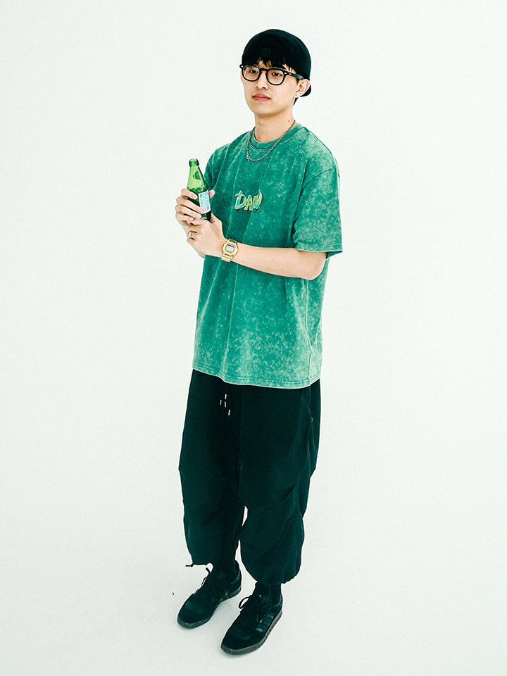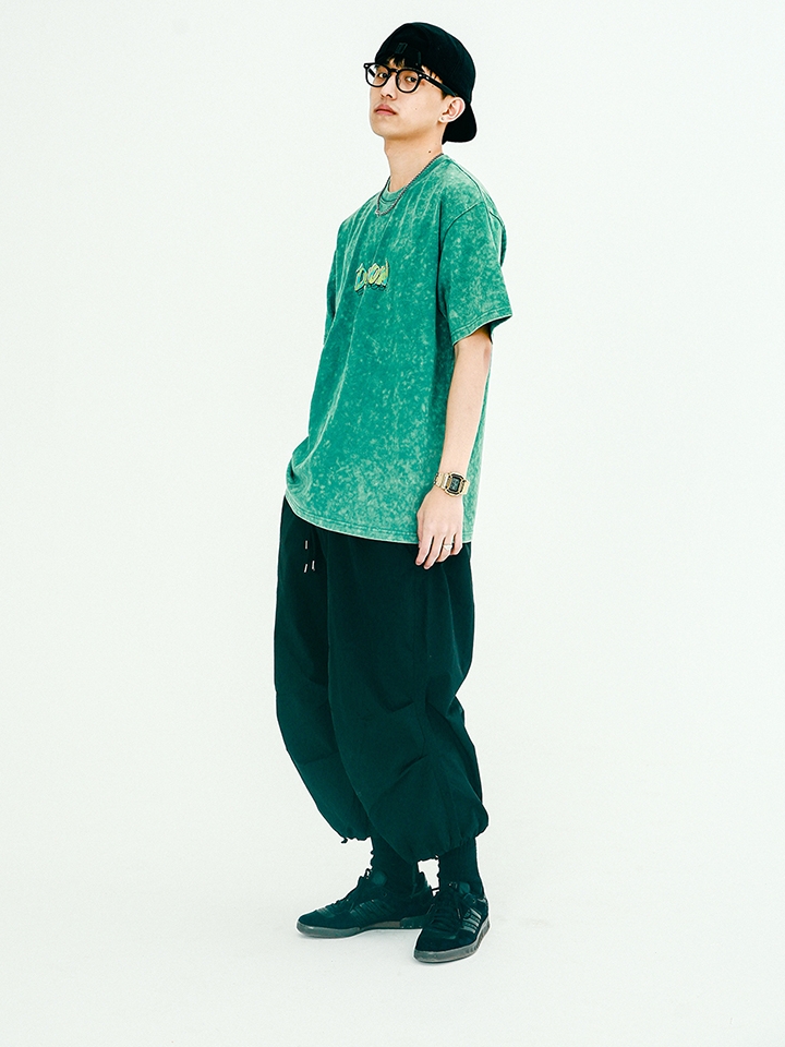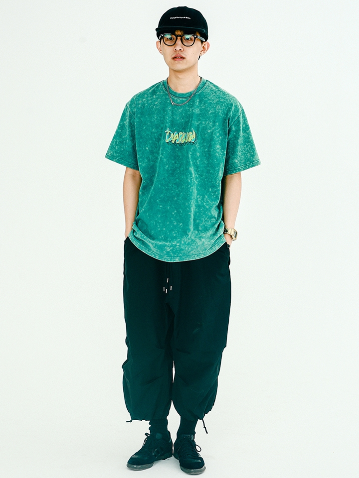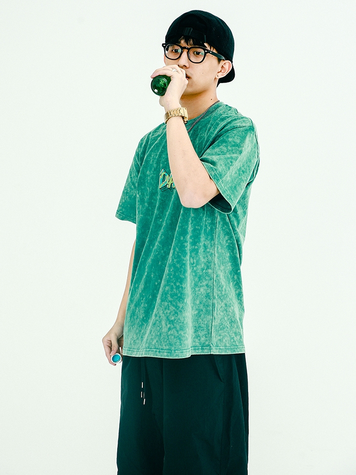 这款T恤主打潮流休闲风格,以复古的祖母绿为主体色调,配上独特的雪花印染而出的渐变效果,使得整体十分具有艺术的美感。