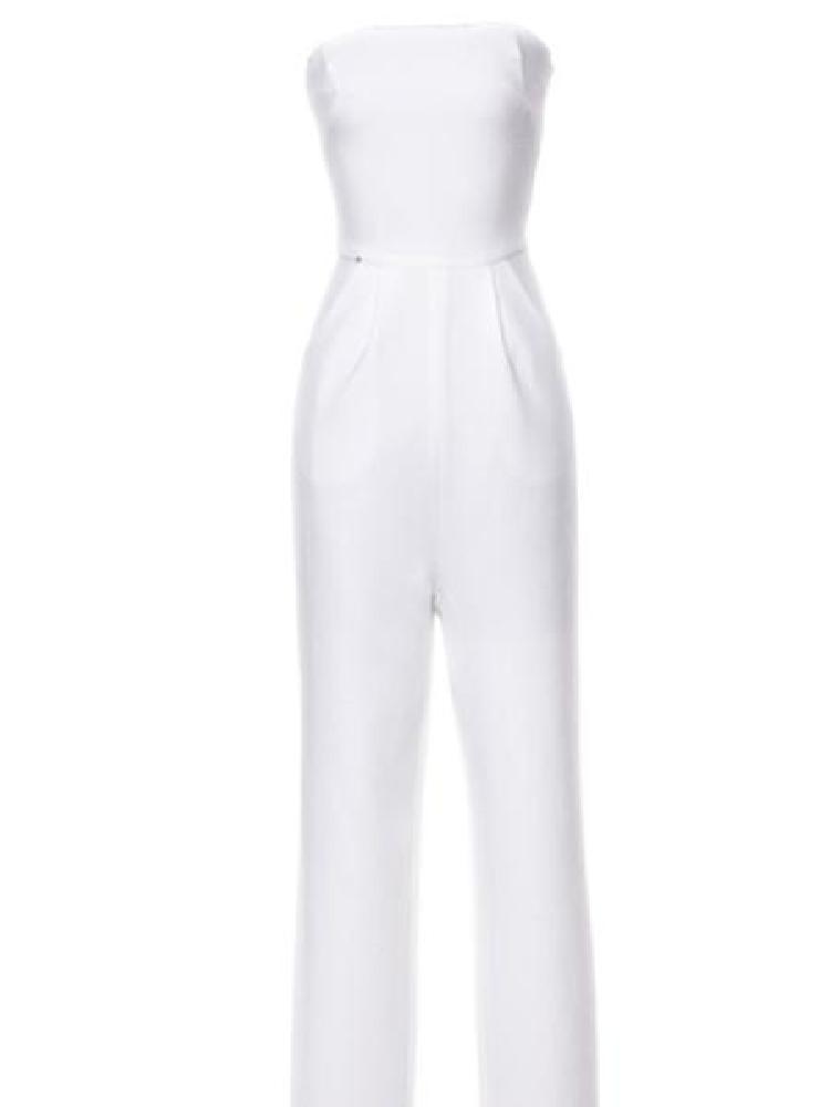 上面白色抹胸和裤子是一起的,整体看起来瘦而高挑,裤子部分从腰部到臀部让人感觉具有一定的弹力,弯出的一道弧线和大腿部分的裤子紧密结合,收放自如。