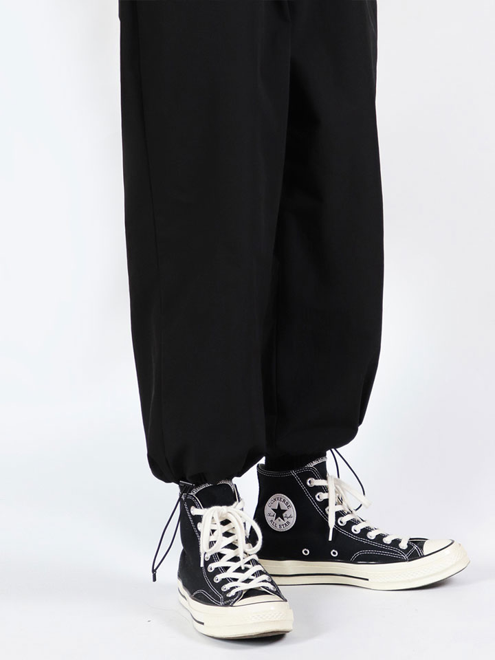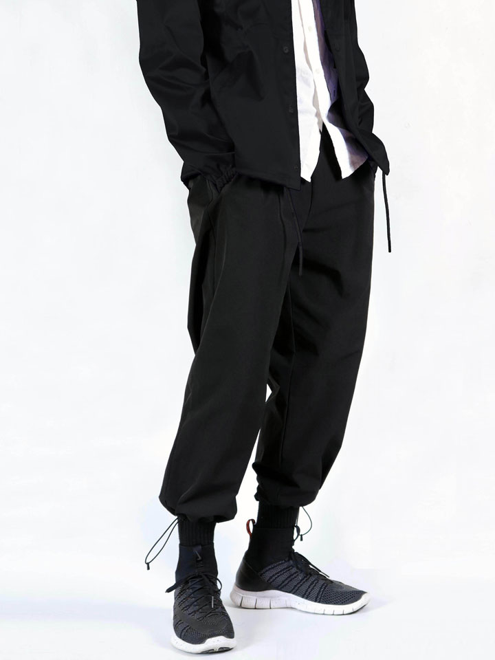 宽松的束脚裤型,很好的拉长腿部线条,变身长腿欧巴。清爽的九分束脚裤,拉伸效果更明显,腰部以及裤脚部分的系带设计,方便实用。