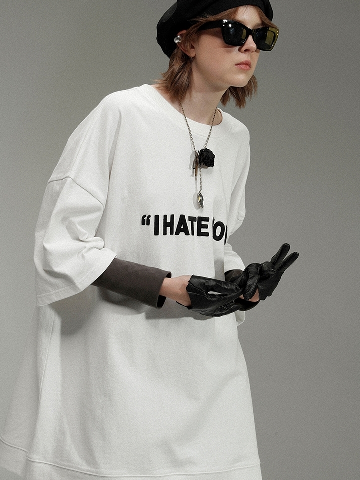 这款t恤是简约的风格,宽松的版型,时尚百搭,胸前的字母印花,很有个性,搭配牛仔裤或者短裤都很好看。