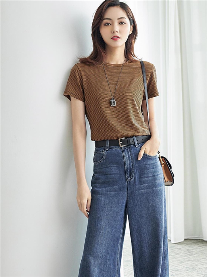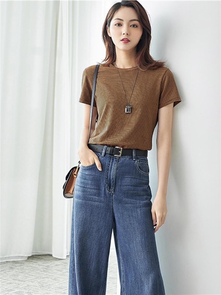 短款的版型,上身很显瘦。一件t恤就可以搭遍所有时尚单品。一件百搭t假期出游潇洒浪一回。