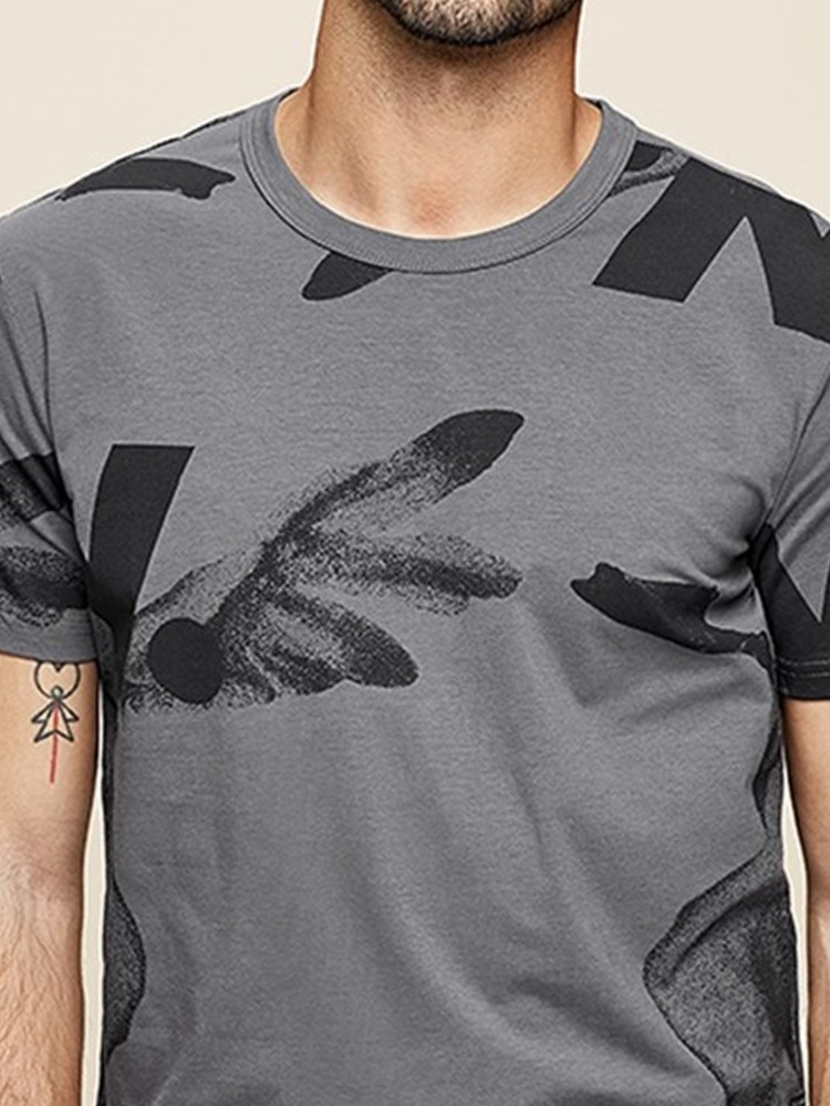 胸前的印花图案,充满了时尚感,修身的版型,穿着舒适自在,搭配牛仔裤或者短裤都很帅气。