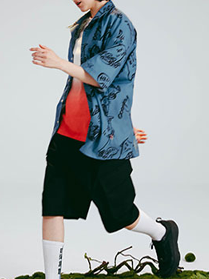 短袖衬衣搭配工装短裤,配上运动鞋,抛下日常通勤装的沉闷拘谨,让你更有自在悠闲感,加上衬衫宽松版型,非常百搭,时尚又有型。