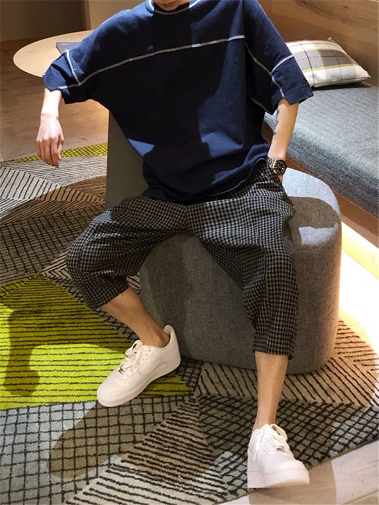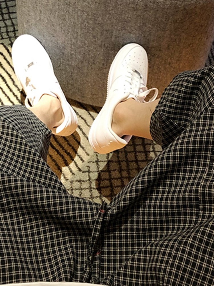 这款休闲裤采用了经典的格纹元素,搭配上经典百搭的黑色,上身效果非常好,宽松的版型,穿着舒适,不挑身材,休闲的款式,穿起来很有休闲范。