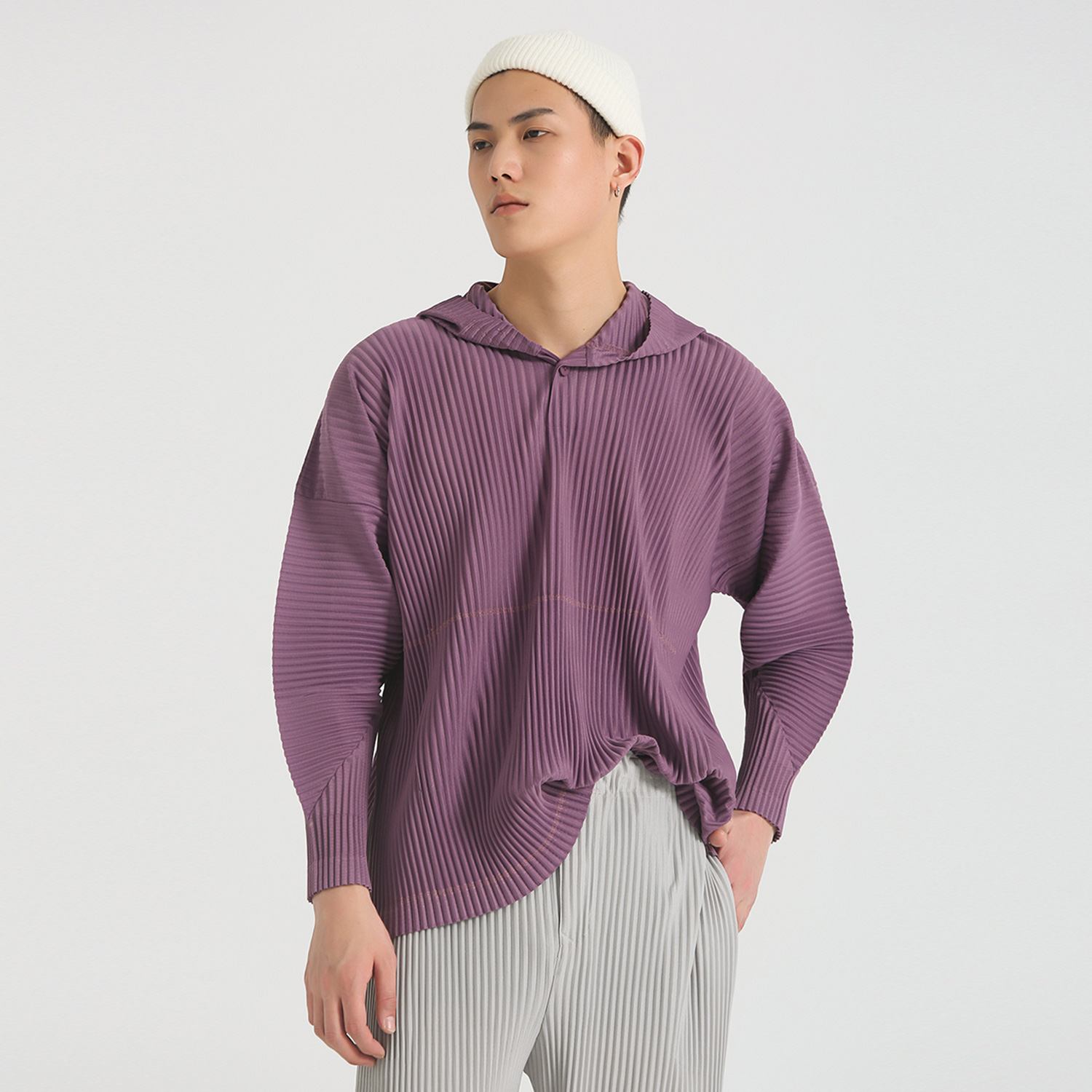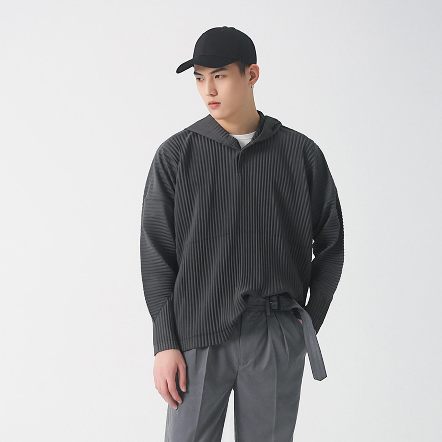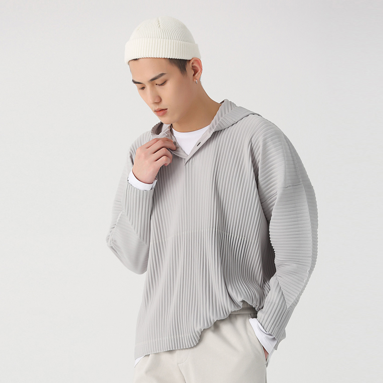 特意设计的宽松版型,除了可以适用不同的身材,独特的褶皱面料更是成为你最舒适的贴身衣物,上身尽显随性慵懒气质。