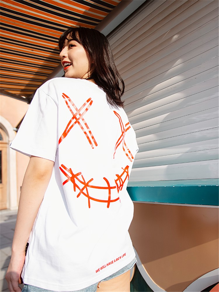 这款T恤是街头范的时尚潮流,时尚领口设计,展露出美好的颈部线条,帅气吸睛,简约的版型,保证了风格的大气感,穿上运动鞋、懒人鞋,都很有夏日的清新。