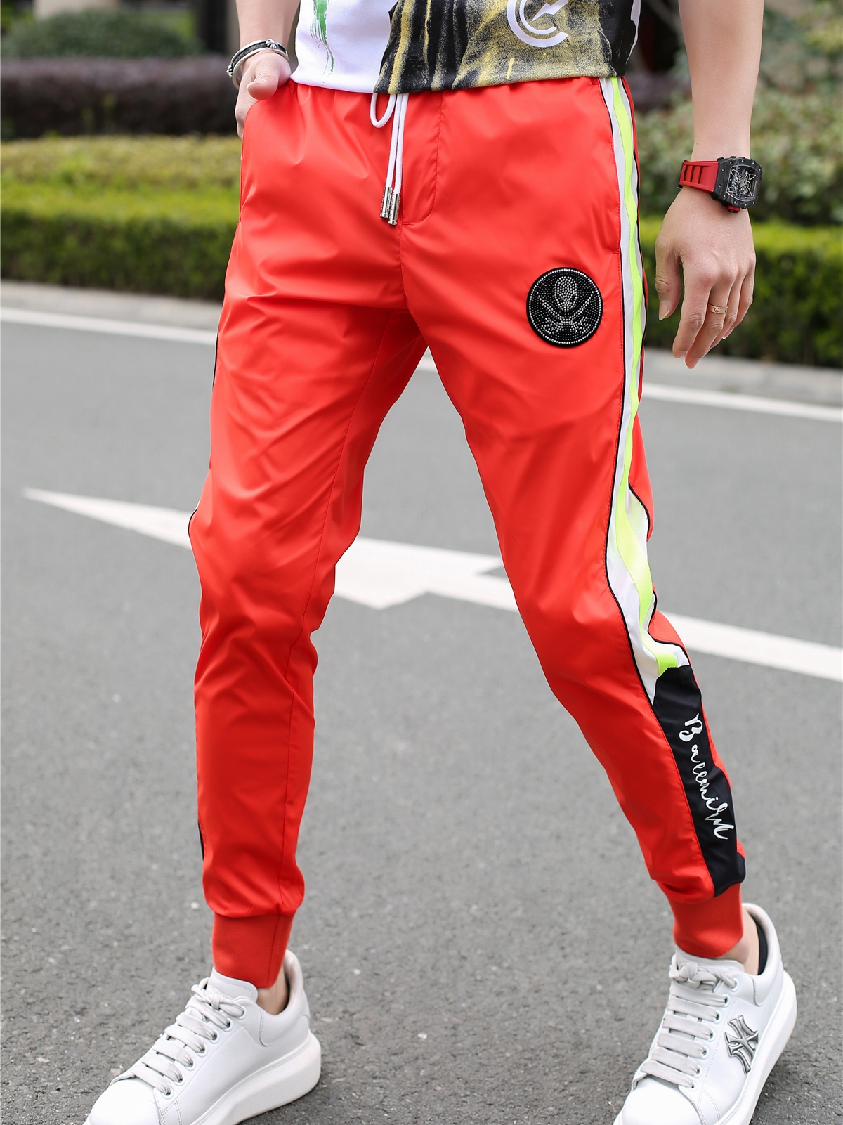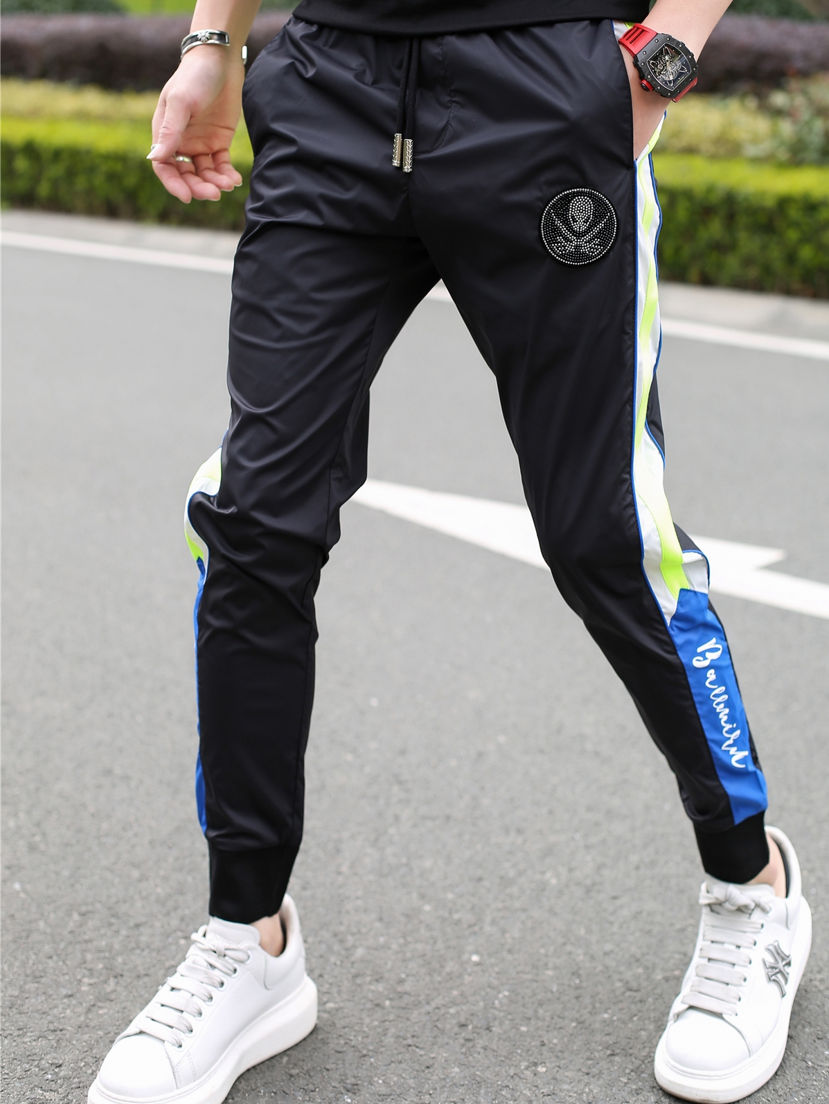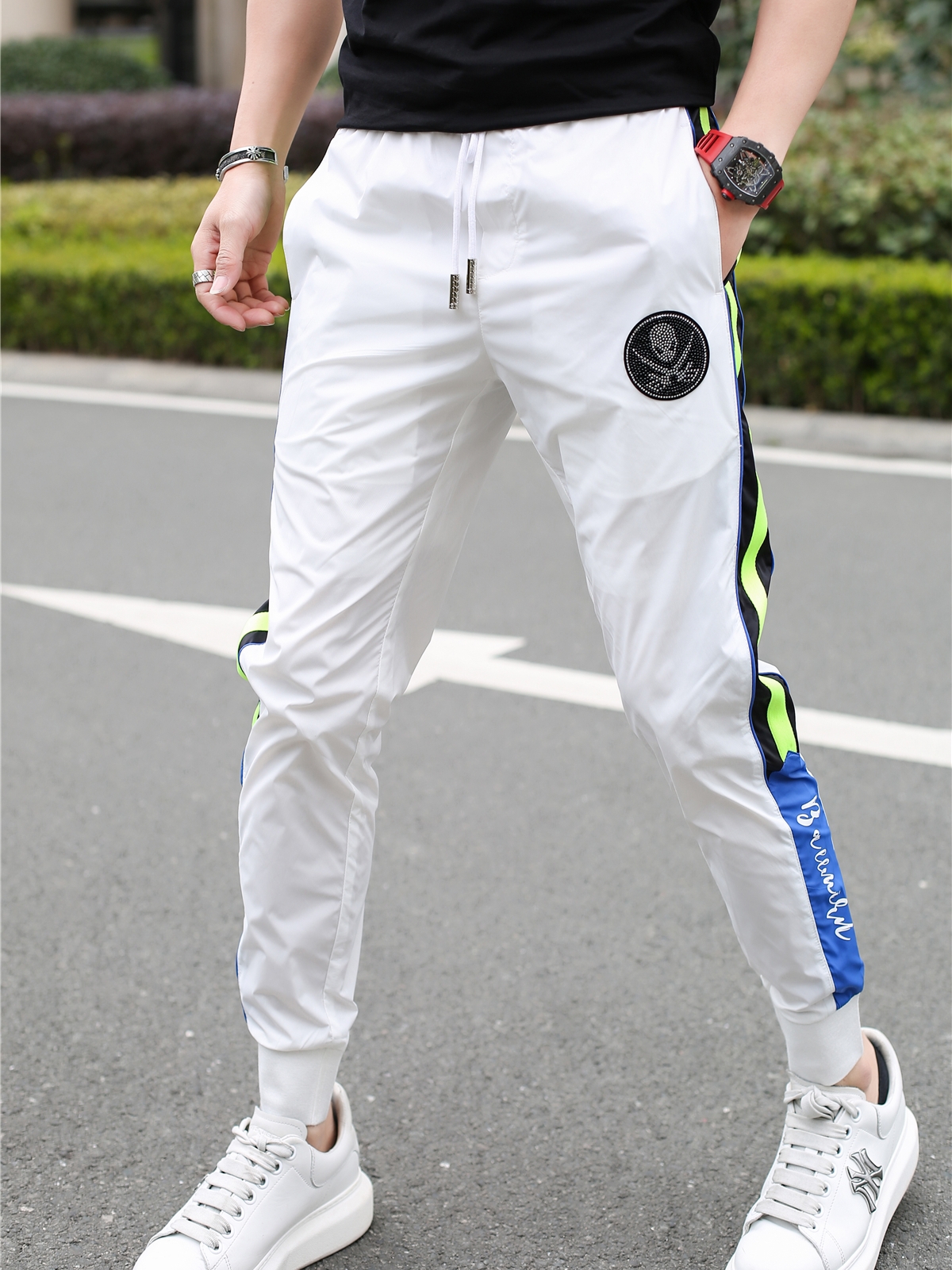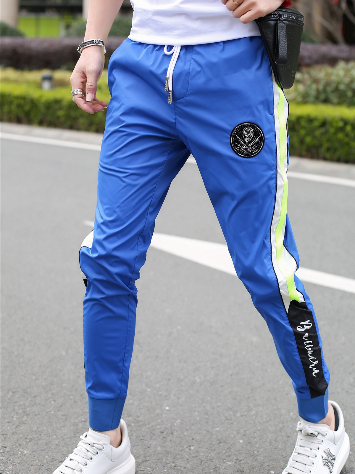 束脚运动裤也是夏季不能少的选择,这款裤腰采用松紧抽绳设计,结合舒适的面料,给你舒适方便的穿着感受,束脚设计穿着也让你看上去更显阳光的气质。