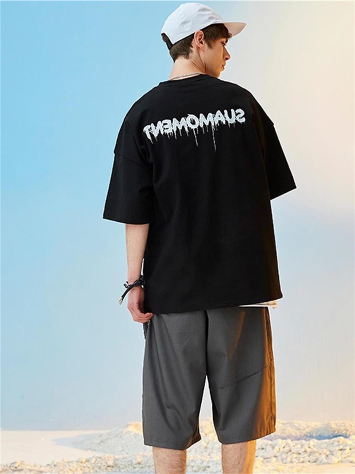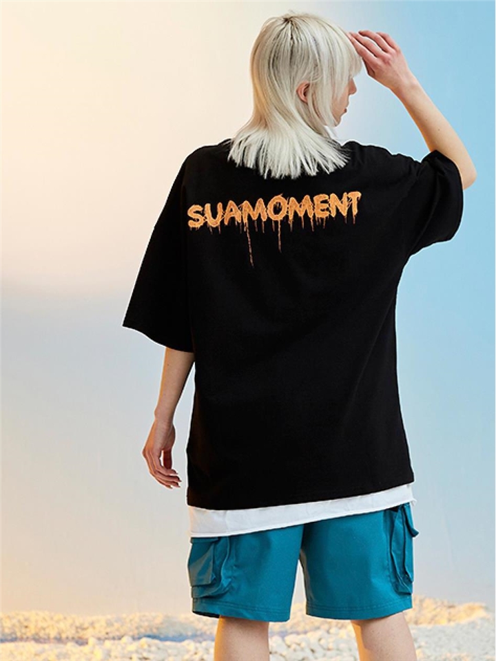 这款t恤是简约的风格,宽松的版型,时尚百搭,胸前的字母印花,很有个性,搭配牛仔裤或者短裤都很好看。