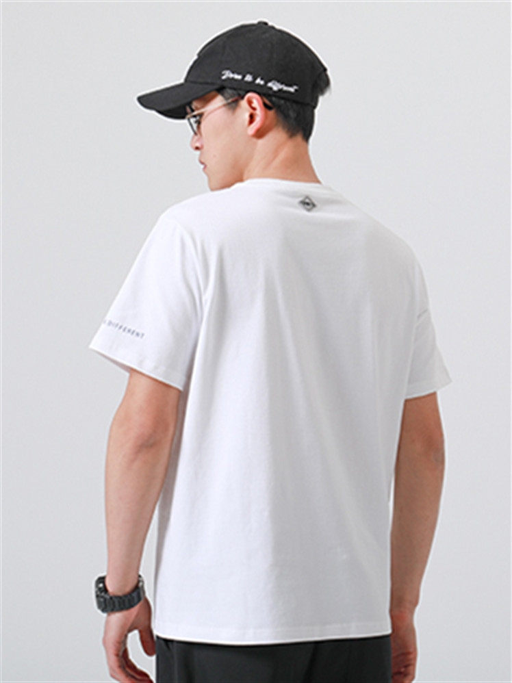 亲肤舒适的棉质面料,质地柔软,夏季穿着透气性好。时尚的短袖,清爽透气,给你舒适的穿着体验。下身搭配素色休闲裤、板鞋,轻松穿出休闲潮范。