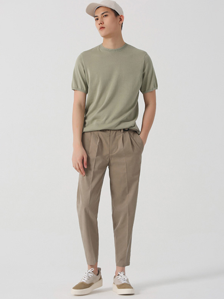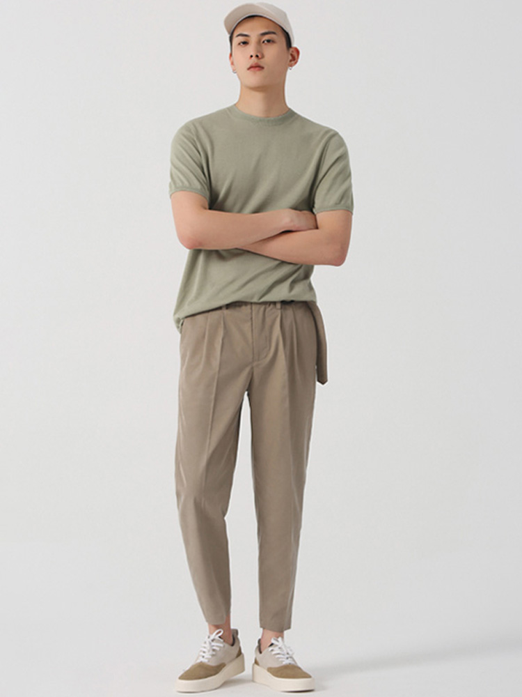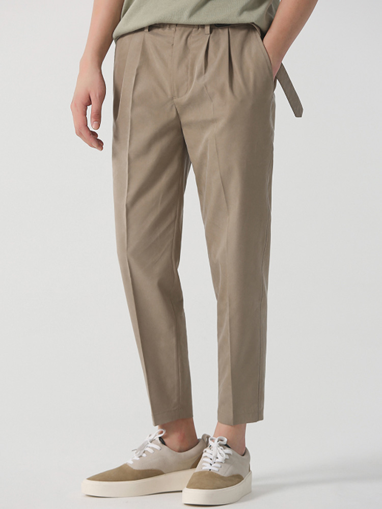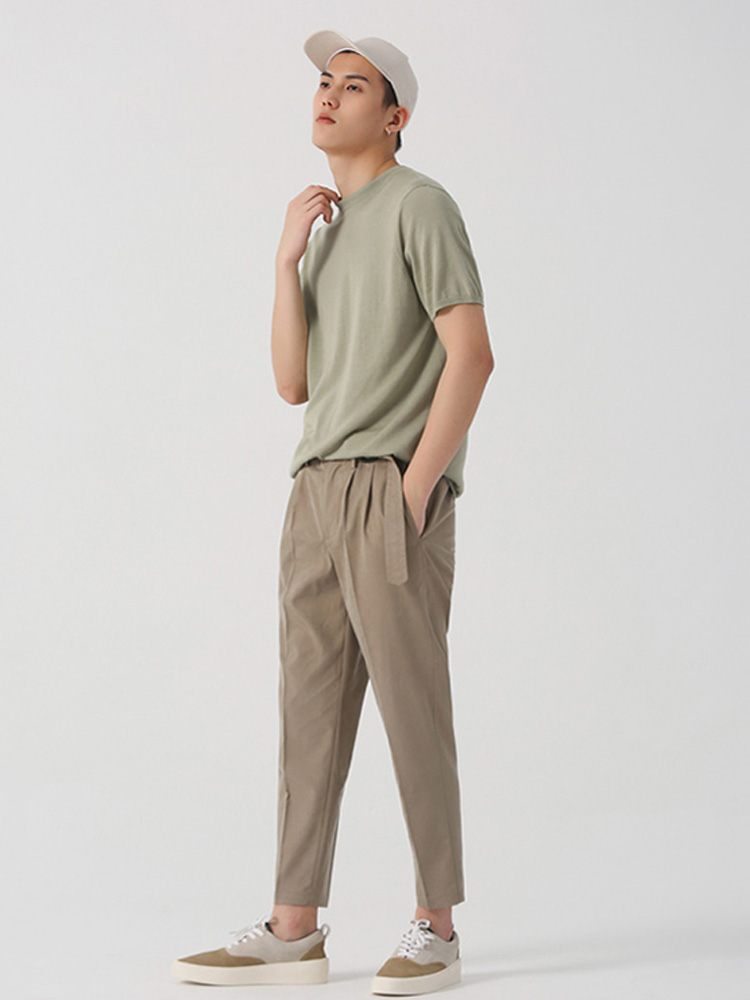 直筒锥型的版型设计,能够很好地修饰腿部线条比例,尽显修长腿型。结合纯色的色系,尽显简约大方的型男魅力。而自带的可调节腰带,让你穿脱更加便捷舒适。