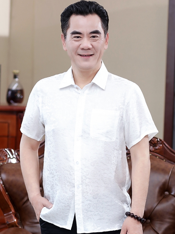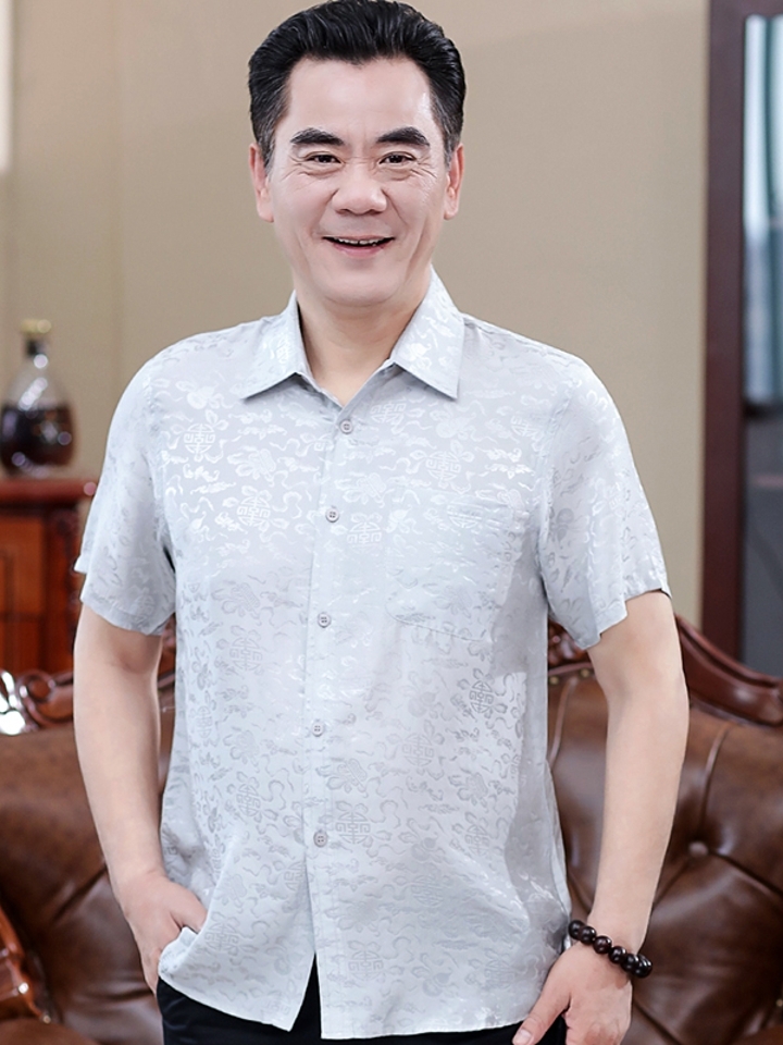 在炎热的夏天,除了短袖T恤之外,短袖衬衫也成为了不少男士的夏日清凉单品。这款短袖衬衫选用桑蚕丝面料制成,上身亲肤透气,舒适感很强,很适合送给长辈穿着!
