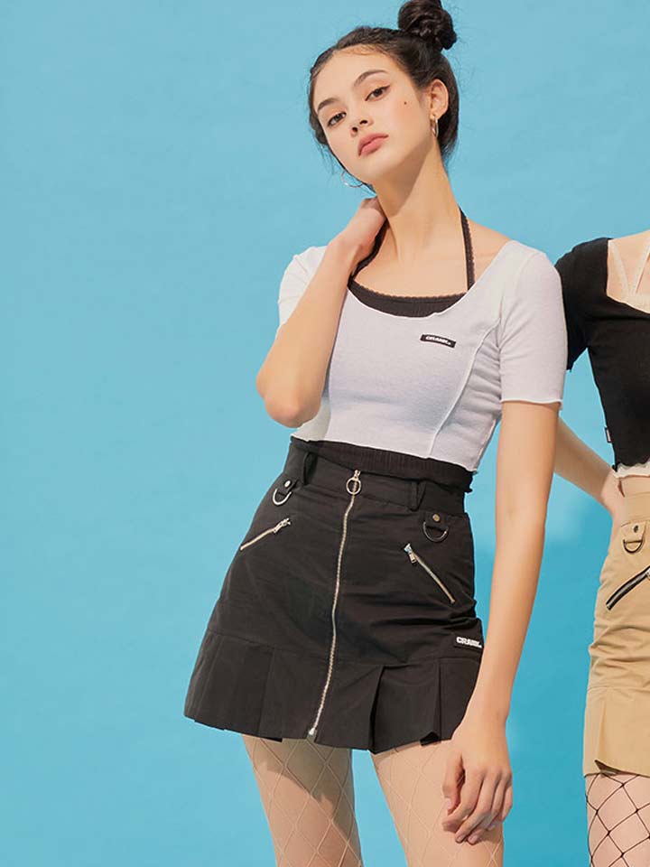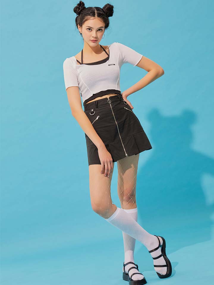 简约的高腰设计,搭配上修身的版型,上身显瘦又显高。