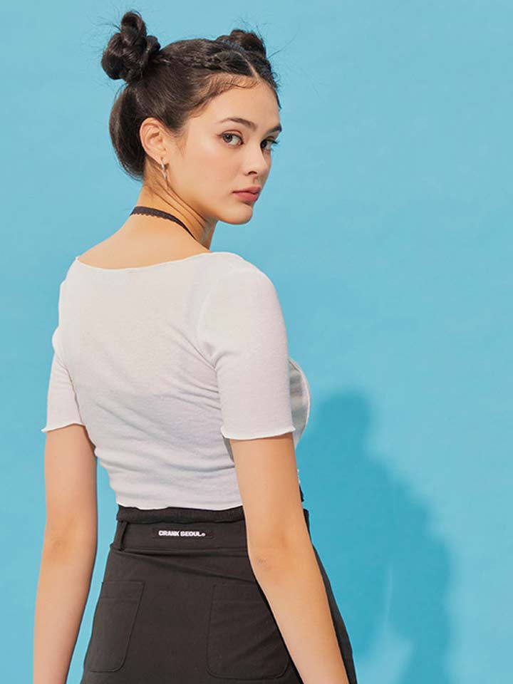 这款T恤是简单的纯白色,轻松营造舒适休闲风格,圆领设计,方便穿脱,紧身修身版型,勾勒身材曲线,迷人吸睛。