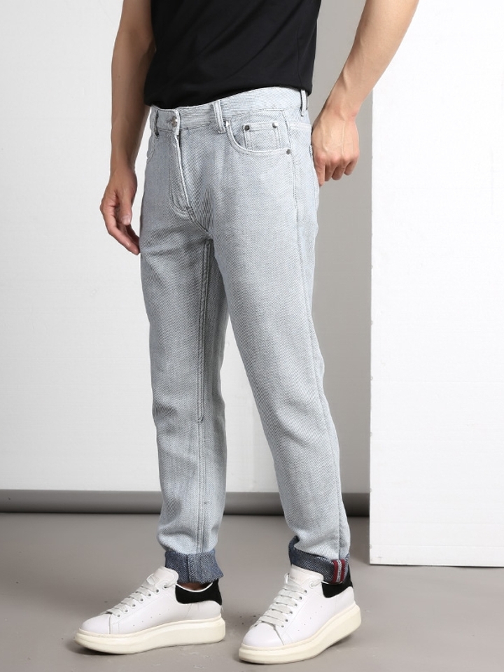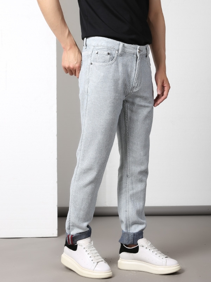 一款简约而不简单的牛仔裤,融合经典与时尚的双重元素,修身的剪裁更注重现代穿着者的需求,卷起的裤脚,随性自然,个性不失格调就是这么自然。