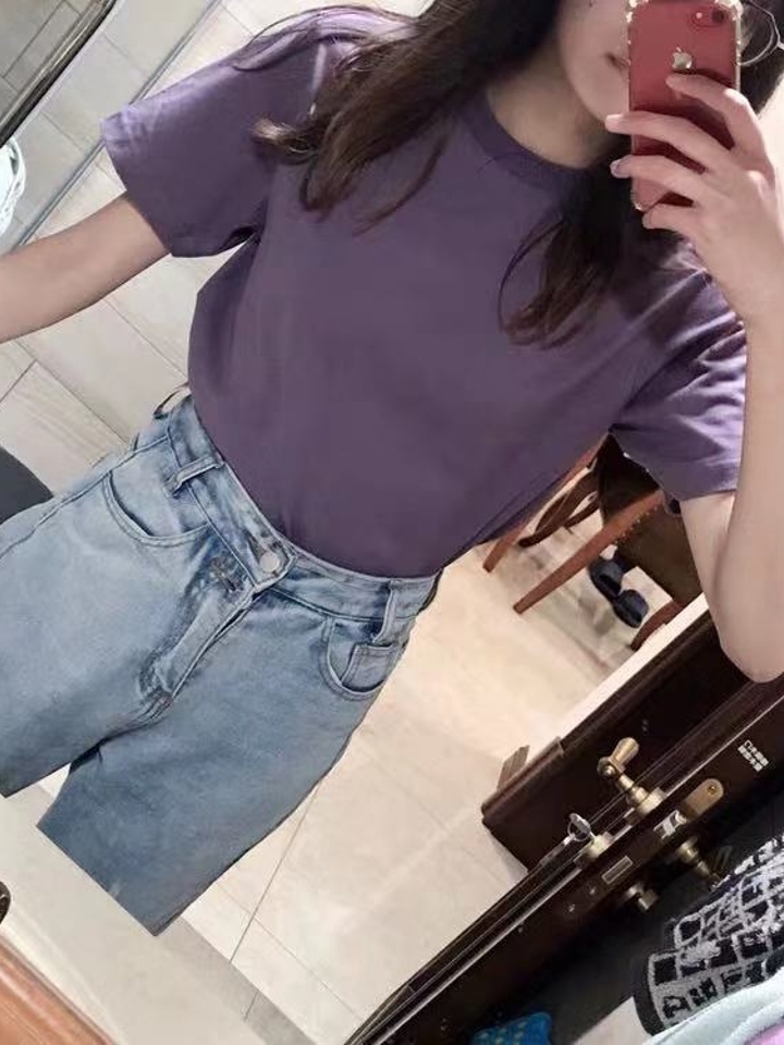 这款圆领纯色T恤,设计有多种纯色系颜色,穿搭中可选择单穿或搭配衬衫夹克组委上装穿着,下装可选择牛仔裤、短裤,男女同款,满足百变的搭配需求。