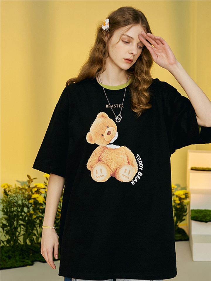 这款t恤是简约的风格,宽松的版型,时尚百搭,胸前的字母印花,很有个性,搭配牛仔裤或者短裤都很好看。