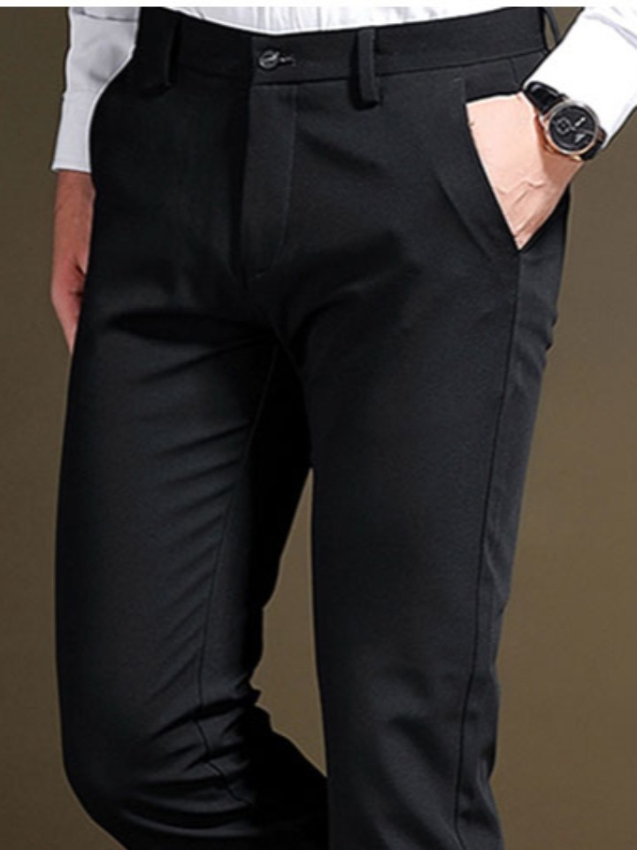 优质定织面料,手感顺滑穿起来垂感好。休闲直筒版型,展现型男笔直腿型。商务休闲复古风格,张扬都市型男魅力。