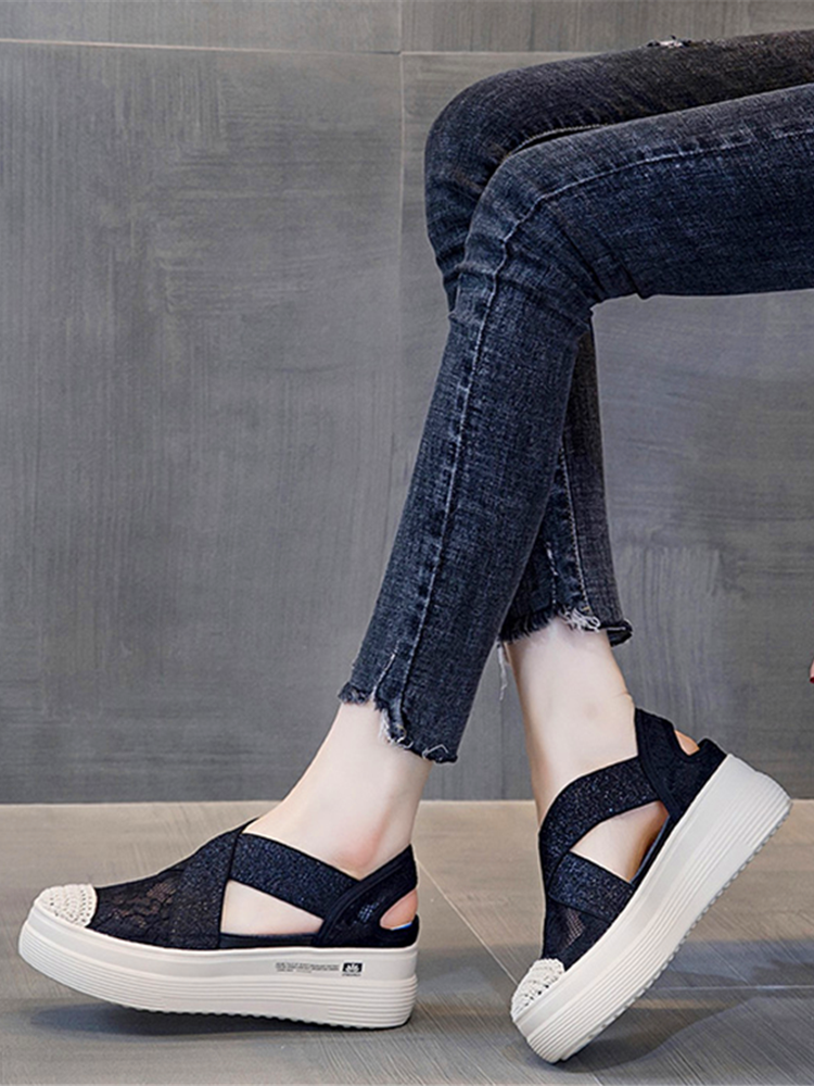 厚底休闲单鞋,镂空鞋面,透气舒适,舒适的坡跟时尚优雅,看不出鞋跟原本的高度。
