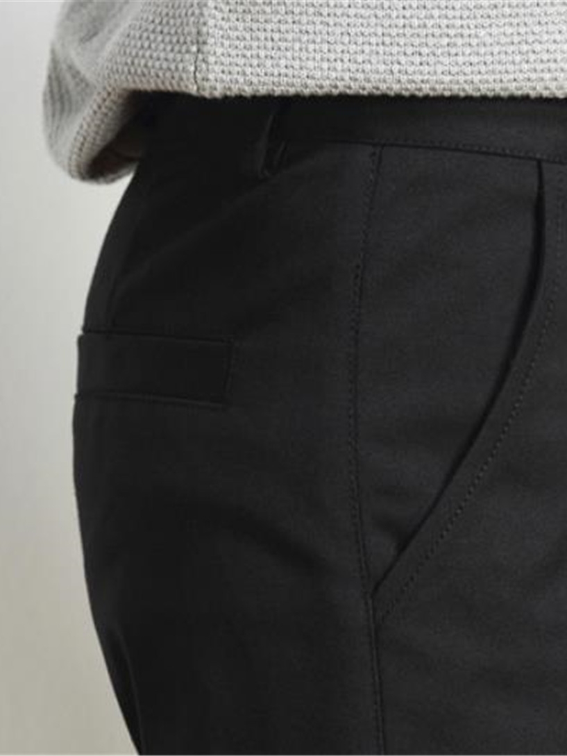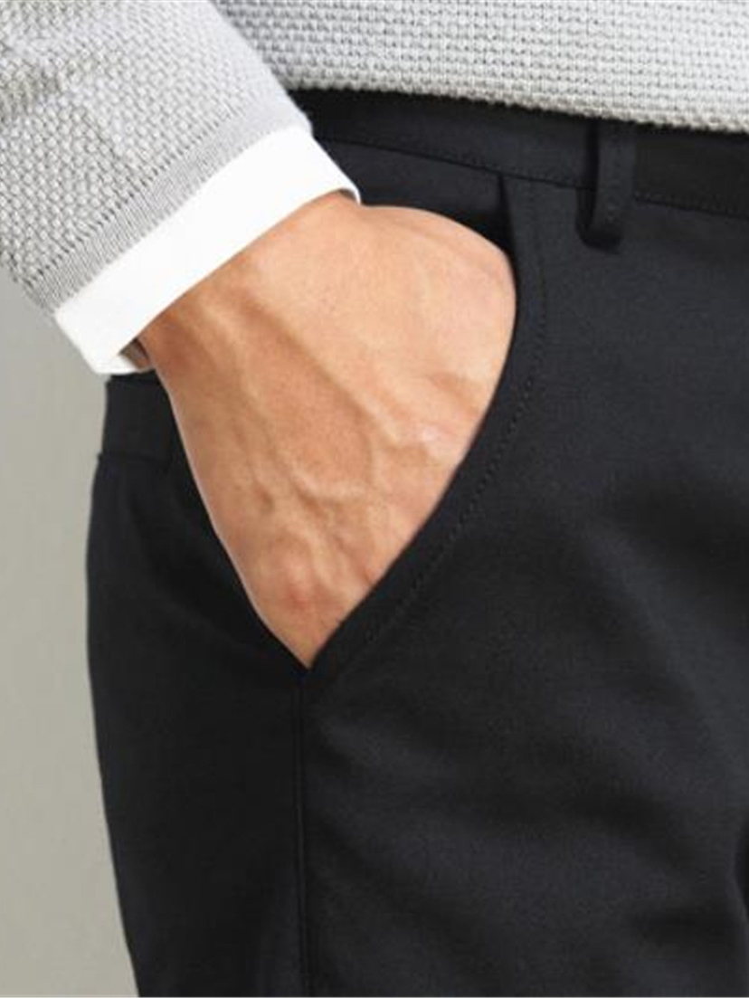 选择微廓形的裤型,有效修饰腿部线条,更增加商务男士的从容自信。加上干净利落的修身剪裁,侧袋设计十分服帖,走线流畅齐整,整体挺括有型垂坠感极佳。
