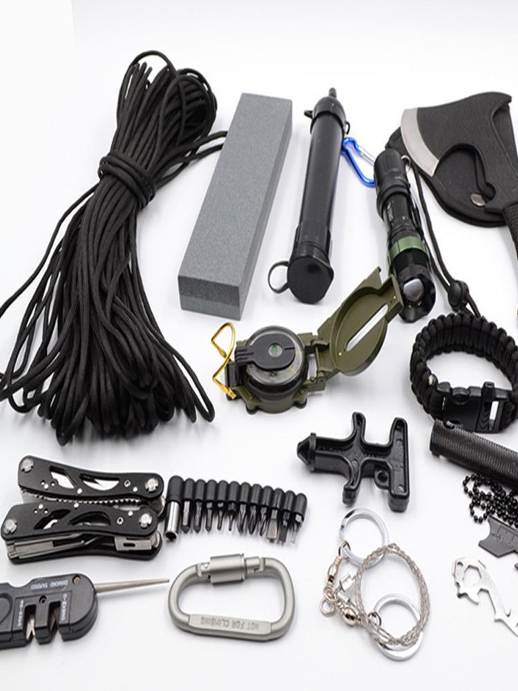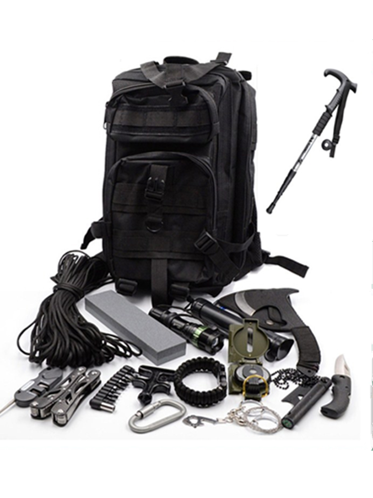 Doite品牌所出品的一款多功能急救工具包,包含着双肩背包、刀具、锁扣、攀登绳、手电筒、登山杖以及指南针等的配件。工具包呈现出立体式的造型感,其中设有着多扣带,可以实现牢固的固定效果。