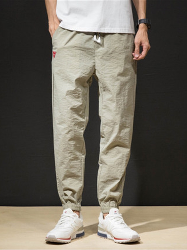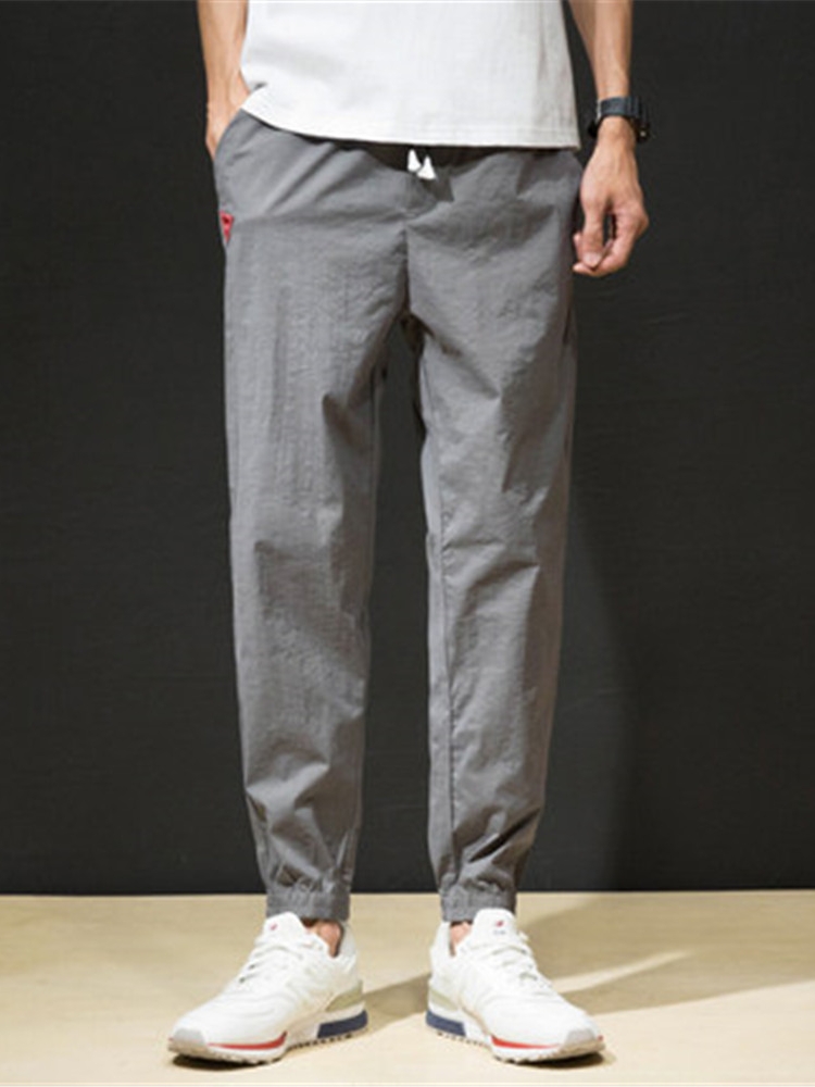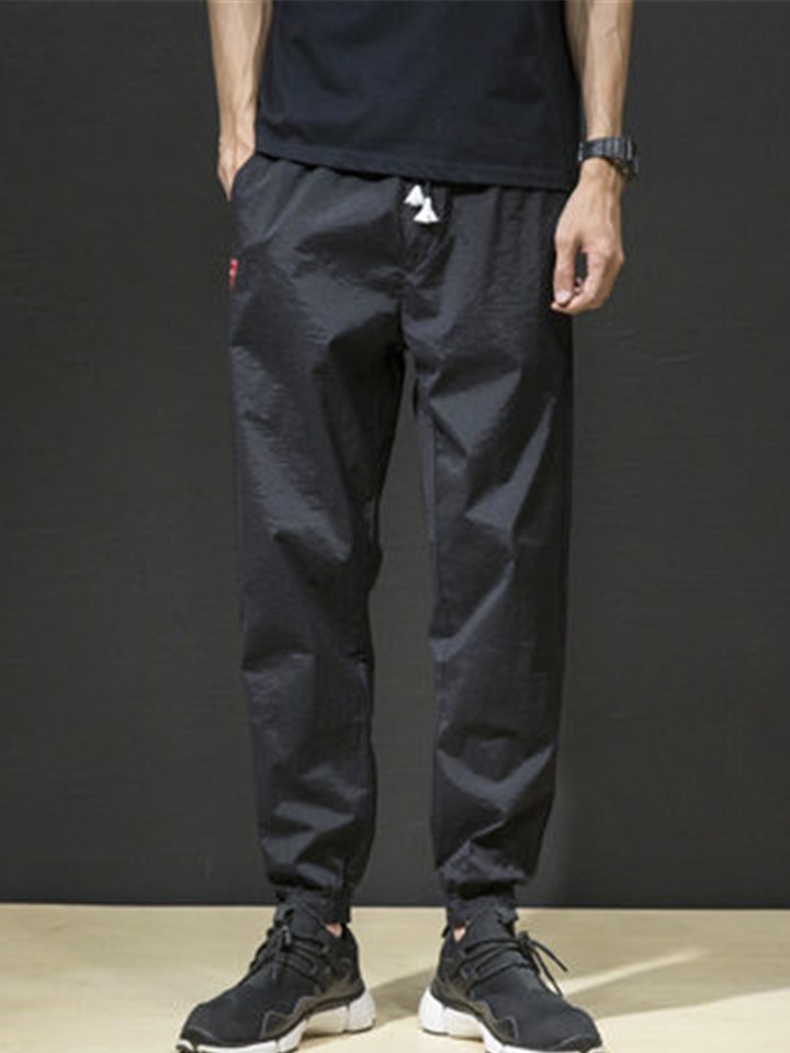 这条休闲运动裤的面料是冰丝面料,手感柔软顺滑,透气性非常好,穿着亲肤很舒适,而且面料在清洗过程中不易出现褶皱、起球现象,所以更加耐穿。