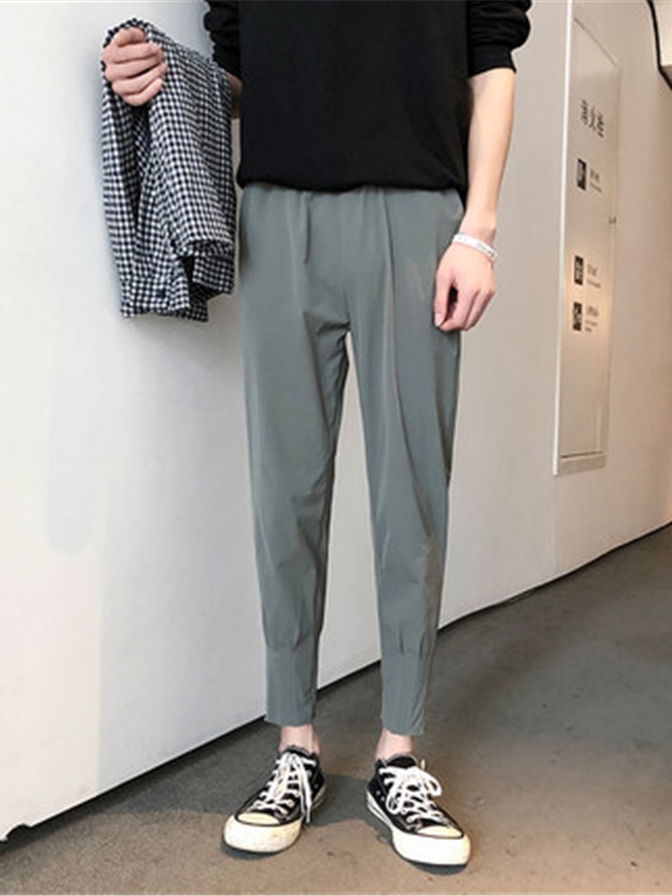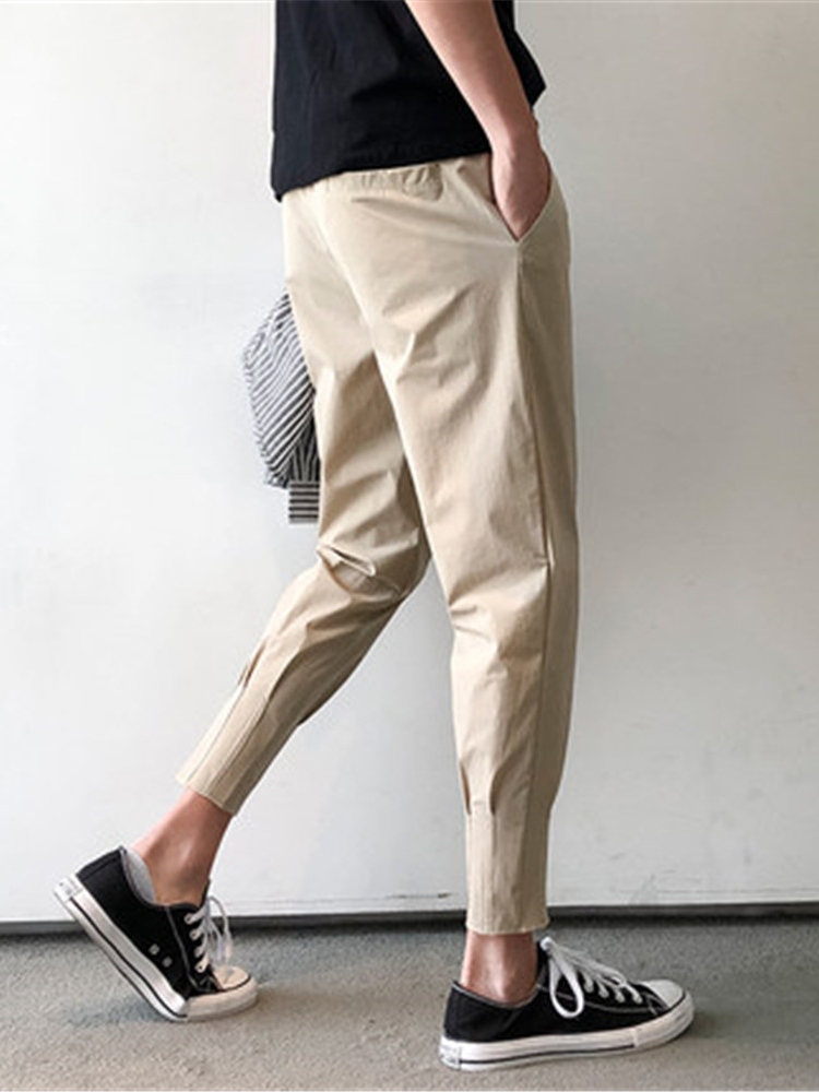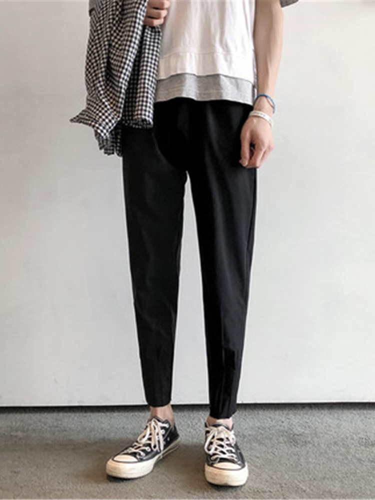 简约简洁的西裤,非常符合穿着需求,线条流畅利落,不脱泥带水,能够轻松衬出男性的精明与干练,而小脚裤的款式与九分的设计,又能够轻松的修饰腿部的线条,显得更加的纤细和修长。