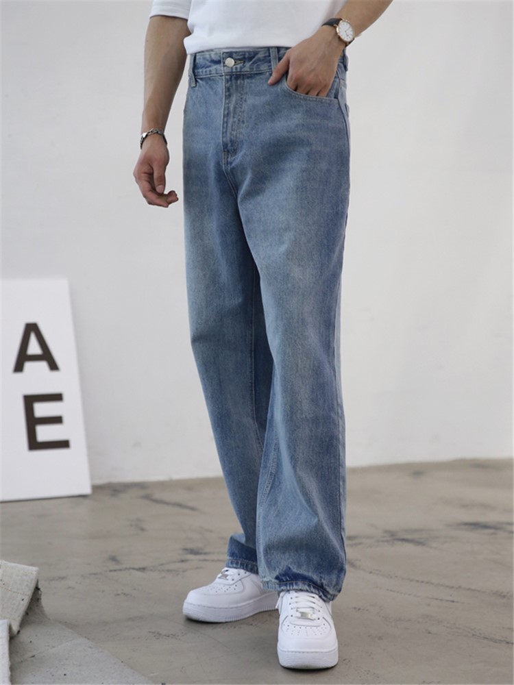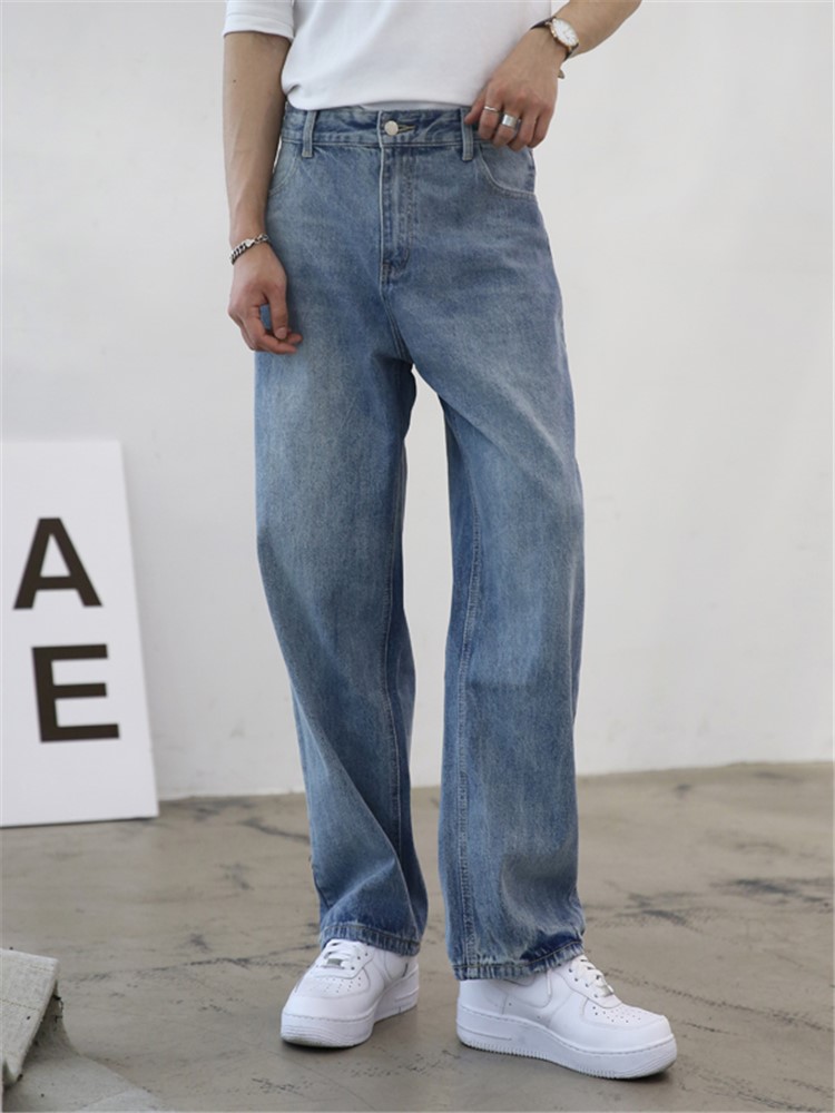 长裤版型,修饰腿部线条。复古直筒牛仔阔腿裤 超级容易搭配 卫衣T恤 衬衫都可以 怎么搭都帅气有型。