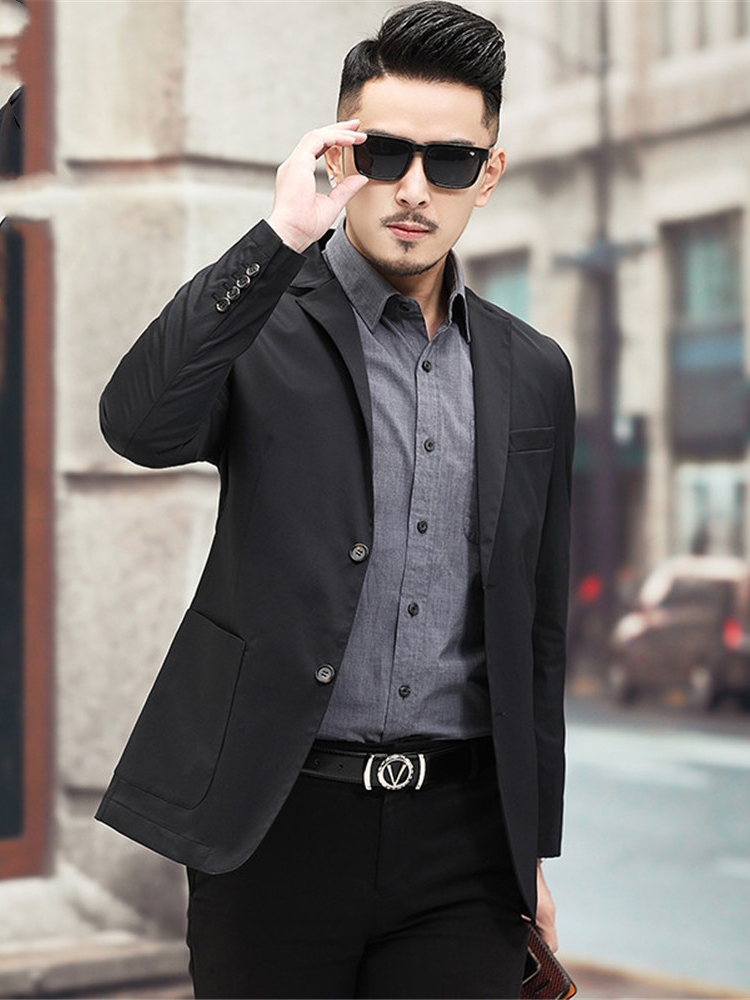 男神装备,立体的剪裁完美贴合人体线条,舒适轻松,西服领很好的修饰颈部线条。内搭一件深色衬衫,下搭休闲裤和皮鞋,轻奢气质。
