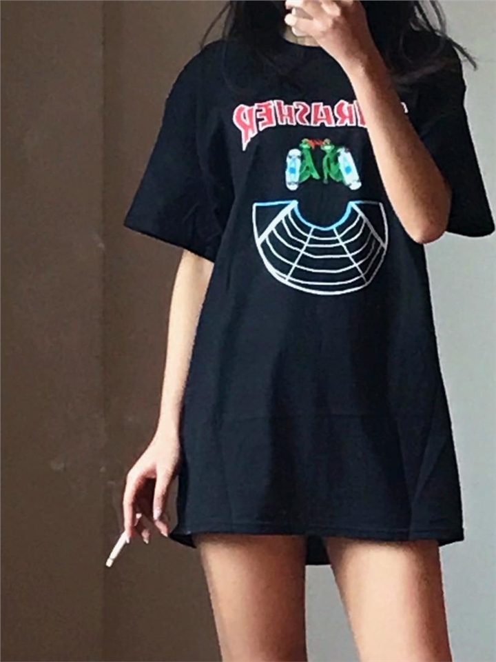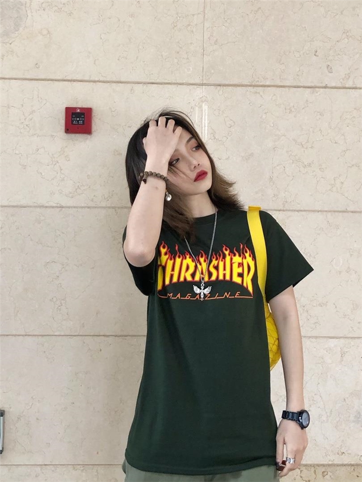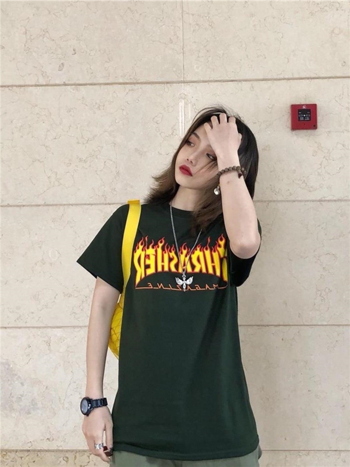 这款t恤是简约的风格,宽松的版型,时尚百搭,胸前的字母印花,很有个性,搭配牛仔裤或者短裤都很好看。