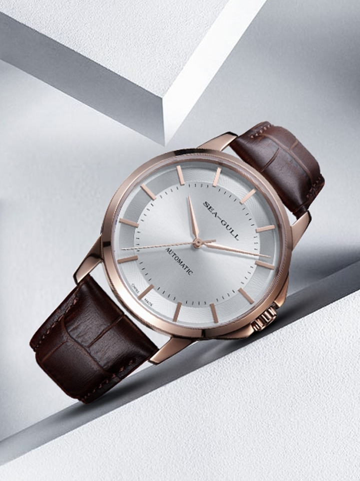 这是一款简约全自动机械男士手表,采用简洁大表盘,搭配复古流行风,精钢表带尽显时尚干练。表镜采用很是耐磨的蓝宝石合成镜面,凸显高质感设计。
