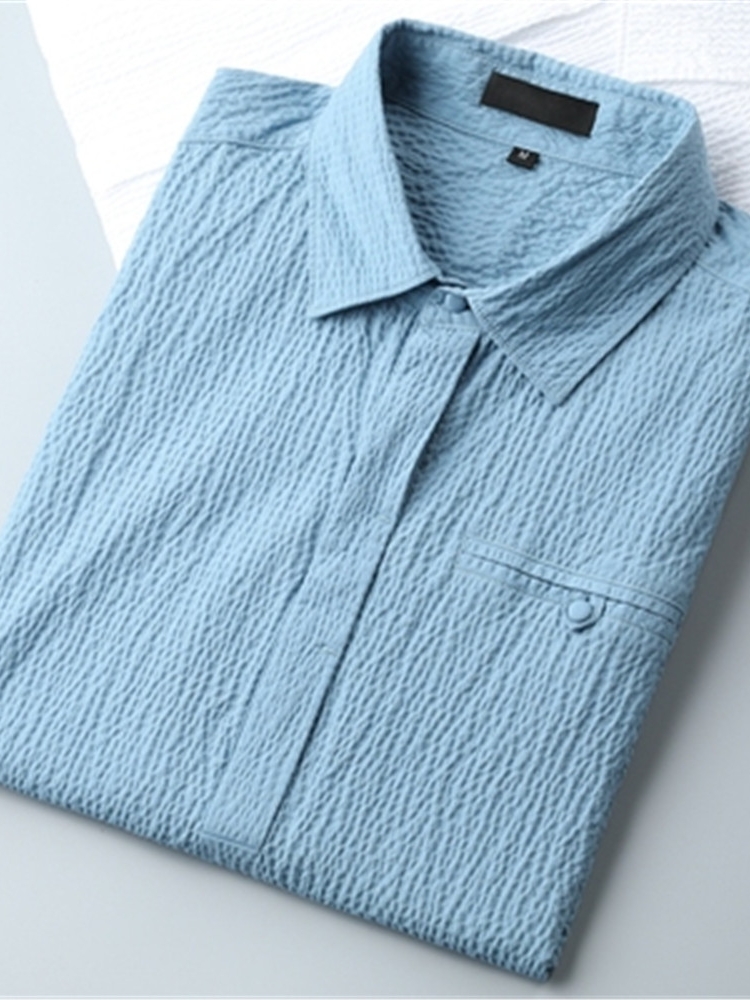 一件兼具休闲与商务的纯色衬衫,纯色简约时尚百搭造型,搭配各种风格都能得心应手,修身的裁剪,精致的 褶皱工艺,穿着工整有型。