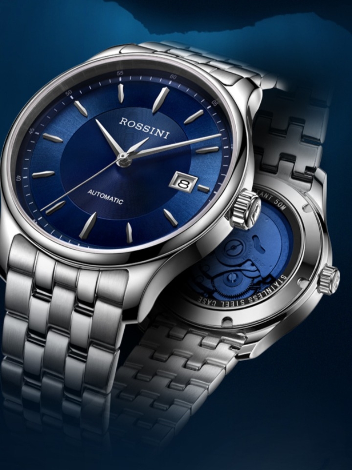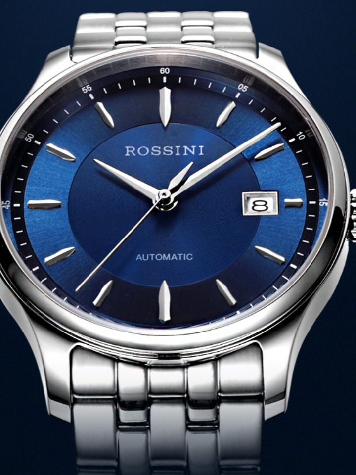 深邃的蓝色表盘搭配金属银色的表圈,彰显着非凡的奢华和高级质感,呈现出一种眼前一亮的视觉效果。其中点缀着简约式的金属刻度和指针式表盘设计,增强整体的机械感和生命力,极具个性魅力。其中日历表盘的加持,更加方便日常准确读时。