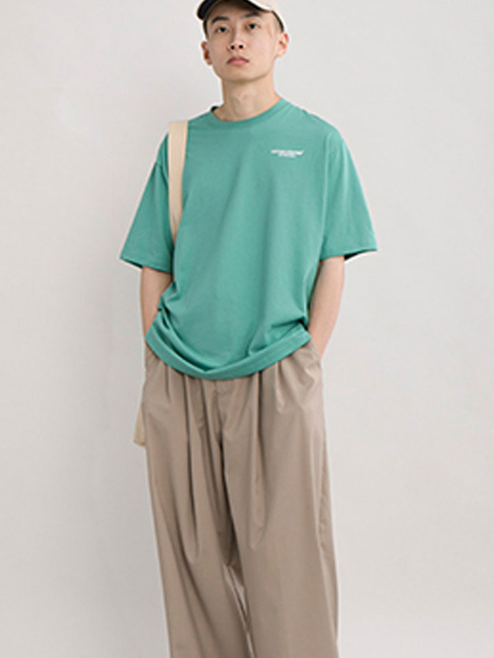 宽松落肩版型,长度适中,包容性很强,适合绝大部分身材。经典圆领造型,做了符合夏日的马卡龙绿色系,整体给人一种休闲潮范的味道。
