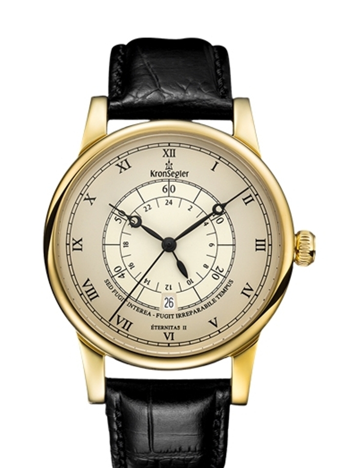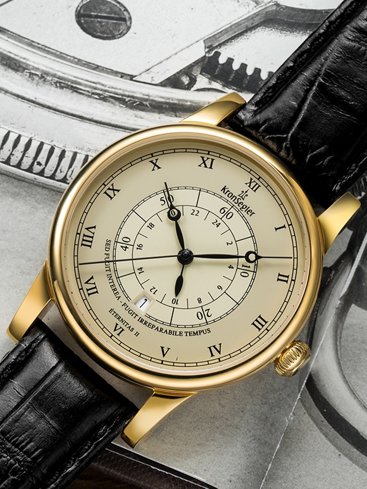 德国知名钟表品牌KRONSEGLER/坤格独家打造的永恒时光系列腕表,采用德国原装进口石英机芯;表盘采用复古纸质色调,搭配罗马数字刻度与宝玑指针,内圈日期下镌刻拉丁诗文,呼应设计主题,意味岁月无情,展现佩戴者的非凡气质;双时区显示设计,满足商旅人士实用性需求。