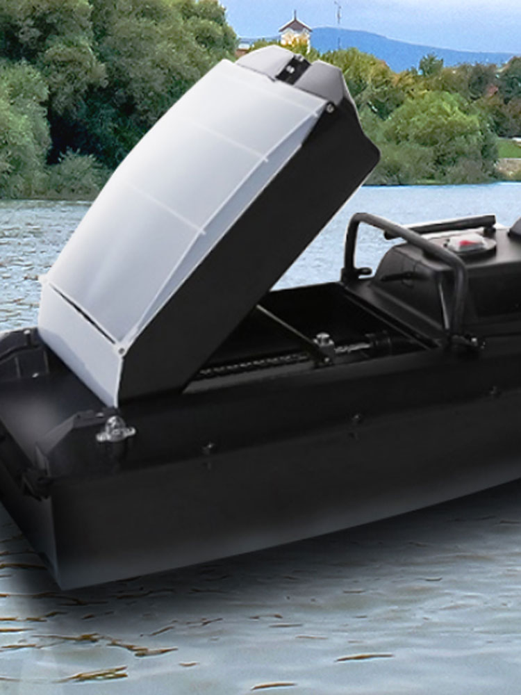 卫星定位自驾导航,同时支持GPS及北斗系统,自驾时信号丢失,自动返航。2公斤大容量饵料舱,电磁舱门设计,方便可靠。双体船设计,平稳抗风。可选配探鱼器,实现定点探鱼功能。