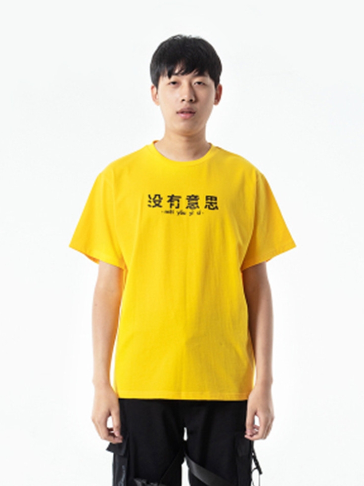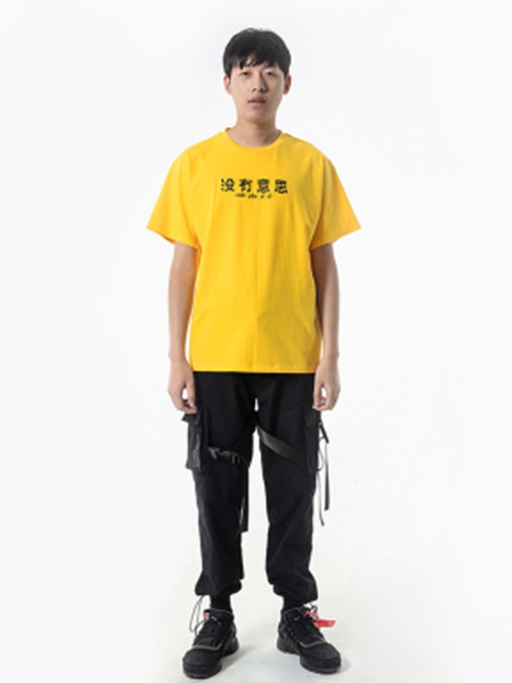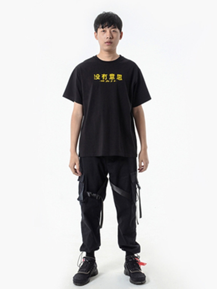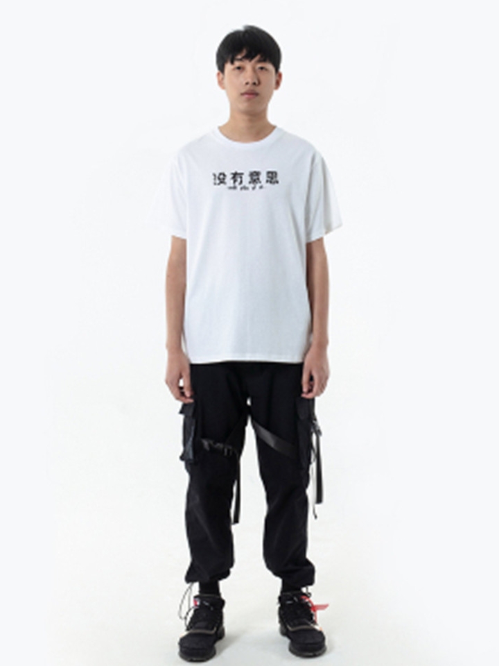 非常简单的造型,代表着极简与克制,是去繁求简的高级智慧。胸前的标语印花设计,个性吸睛,穿着自有一种帅气。