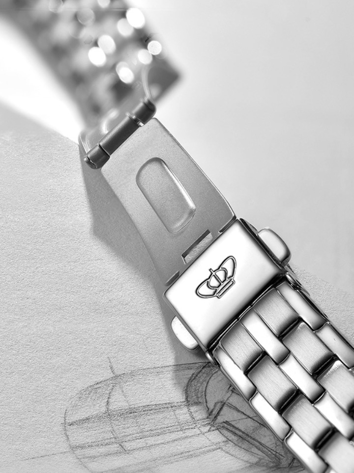 小而精致的女表无疑是女士手腕的精彩之处。通体钢质带来的光感,且用小表盘的设计,好像隐约间表露了一种颇为秀气的优雅。对于中式审美来说,这种秀气的优雅正是最能打动人心的一点,很有中式审美的时尚感和高贵味道。