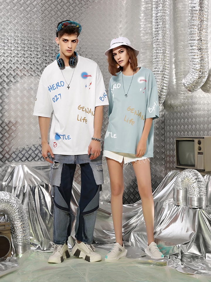 这款t恤是简约的风格,宽松的版型,时尚百搭,胸前的字母印花,很有个性,搭配牛仔裤或者短裤都很好看。