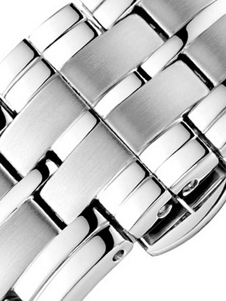 表带表冠采用316L精钢,316L精钢是不锈钢,耐蚀性十分强,手感十分舒适,且对皮肤非常友好无刺激,双蝴蝶扣的设计,佩戴非常便捷又倍显您的优雅。