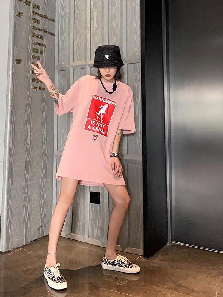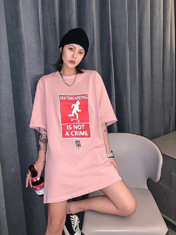 这款t恤是简约的风格,宽松的版型,时尚百搭,胸前的字母印花,很有个性,搭配牛仔裤或者短裤都很好看。