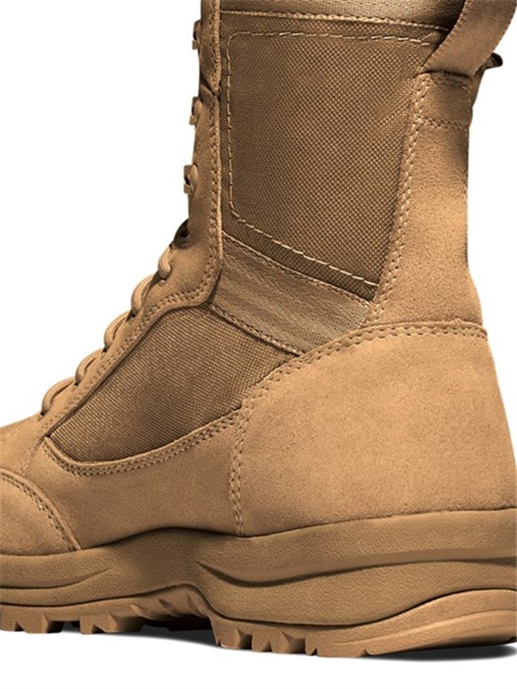 这款战术靴采用防水透气的面料,具有良好的透气性,能够有效的保护足部,保持足部干爽舒适鞋面采用了防水的设计,有效防止雨水进入,让你的双脚保持干爽。