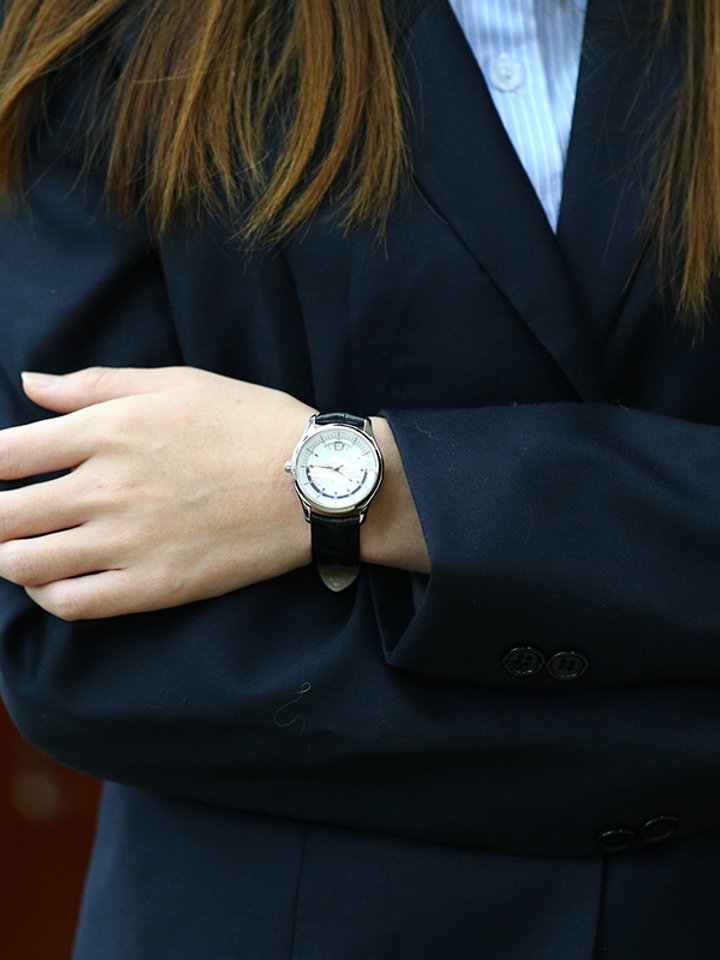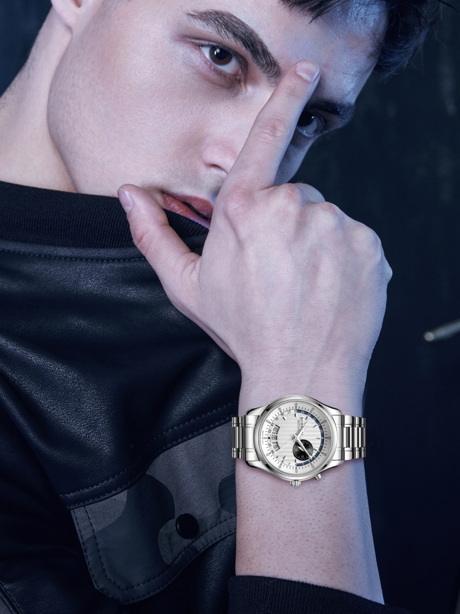 本款男士手表精选进口瑞士石英机芯,走时精准;配合蓝宝石玻璃镜面