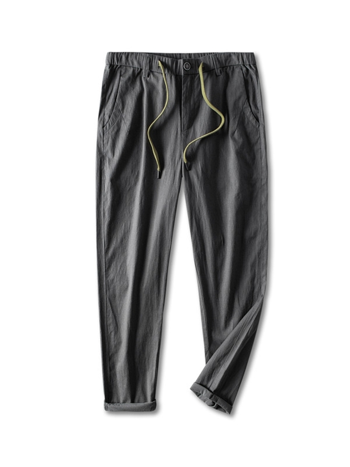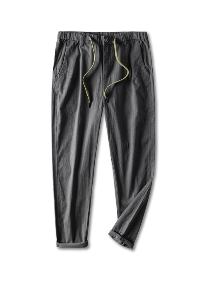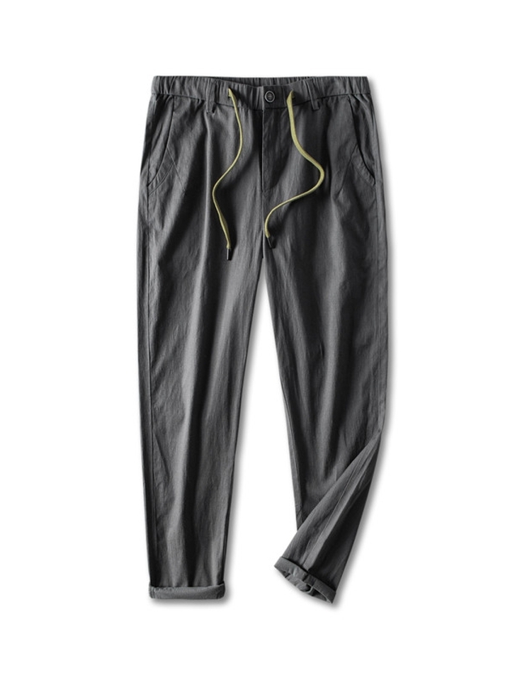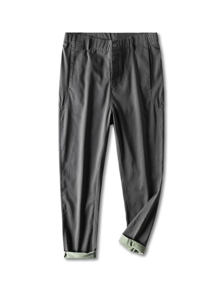 精选高含冰丝面料,质地柔软舒适,穿着亲肤自然。修身束脚设计,帅气的同时尽显复古潮流。松紧裤带设计,具体穿着自由和舒适度。轻松穿出型男品味。