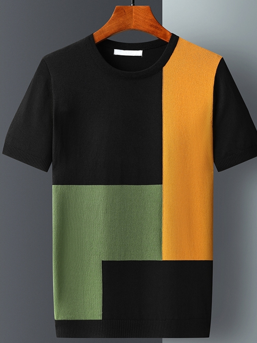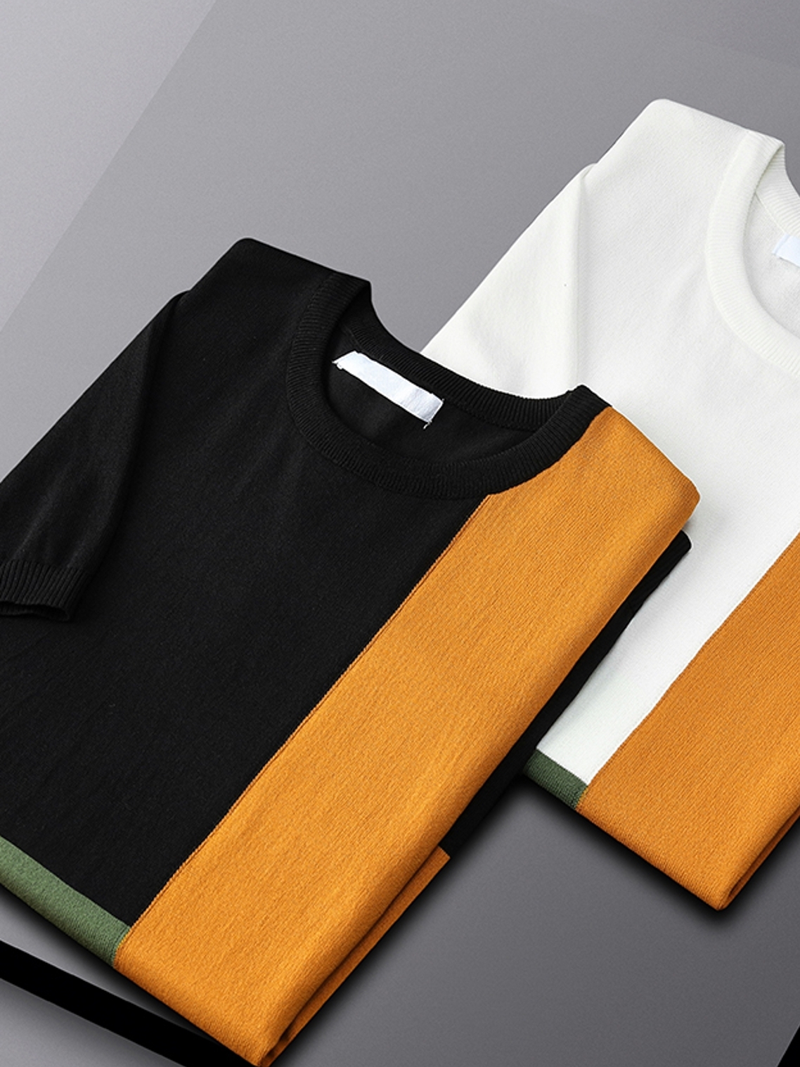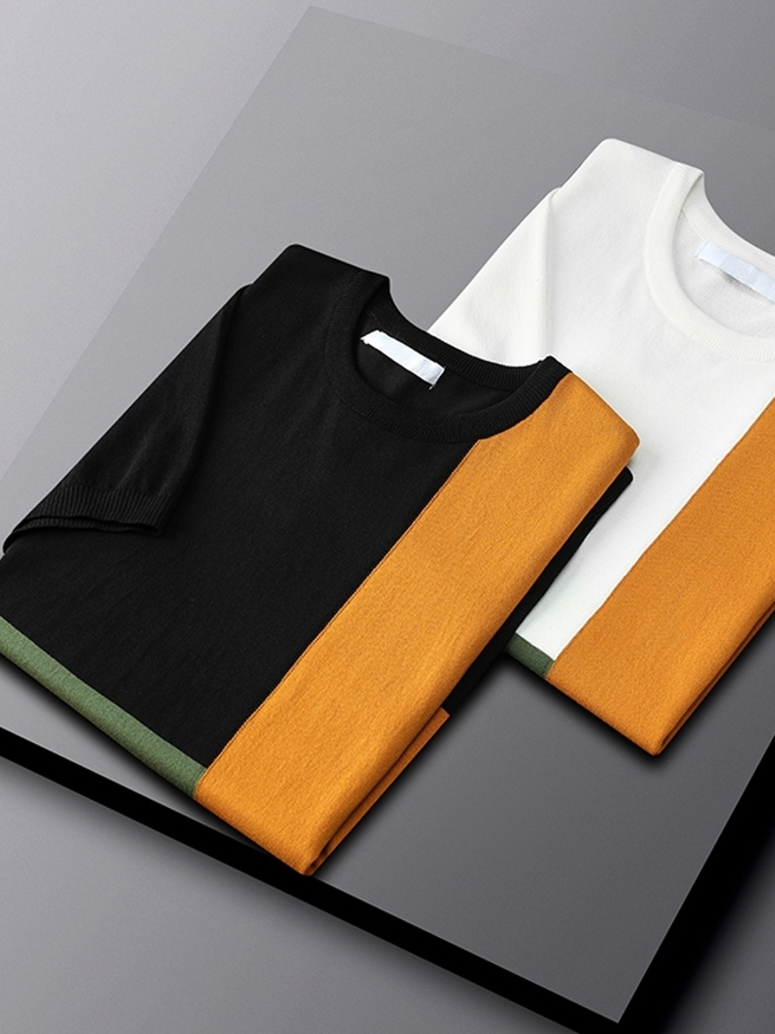 撞色拼接的颜色设计,让这款短袖的设计感十足,尽显活力。简洁圆领,配合短袖设计,显瘦又轻松随意。