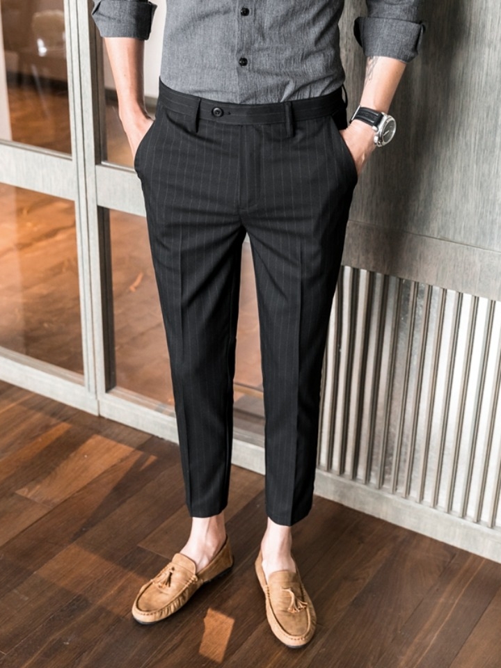 比西装裤更好的修饰身材。九分设计能很棒的拉长腿部效果哦。配上长筒袜小皮鞋就是妥妥的一枚绅士呢。流畅的线条很适合腿型好看的男生呢。